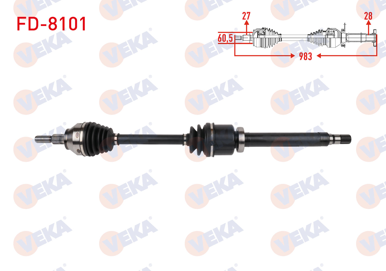VEKA FD-8101 | Komple Aks Sağ On Uzunluk 983mm Ford Transit Connect 1.5 TDCI 6At 2013-/ Tourneo Connect 1.5 TDCI 6At 2013 -