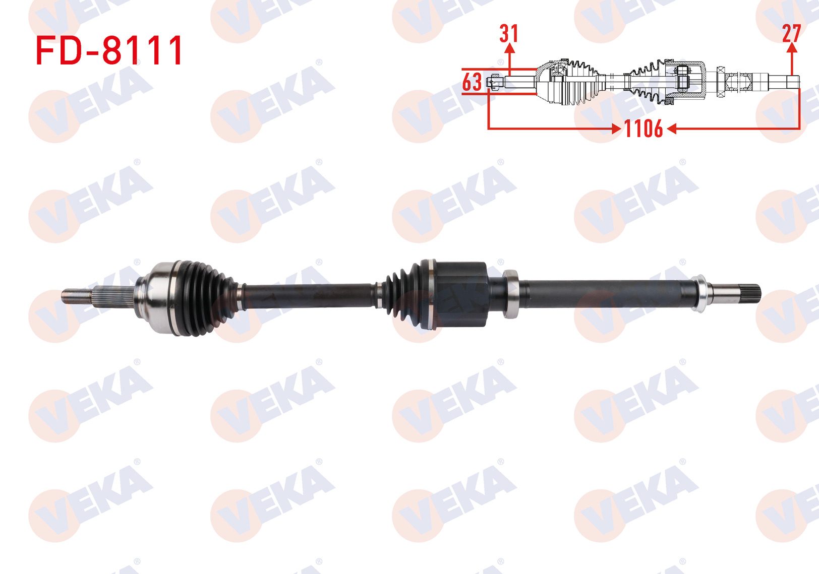 VEKA FD-8111 | Komple Aks Sağ On Uzunluk 1106mm Ford Tourneo-Transit Custom (V362) 2.0 Ecoblue A-T 2015 -