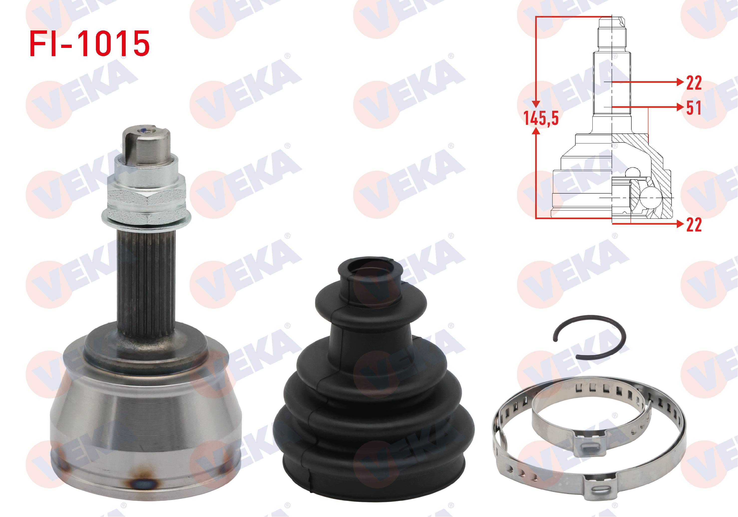 VEKA FI-1015 | Aks Kafası Sol-Sağ On Dıs Fiat Doblo (119,223) 1.2İ 22X22x51 Uzunluk 146,7 mm 2001-2010