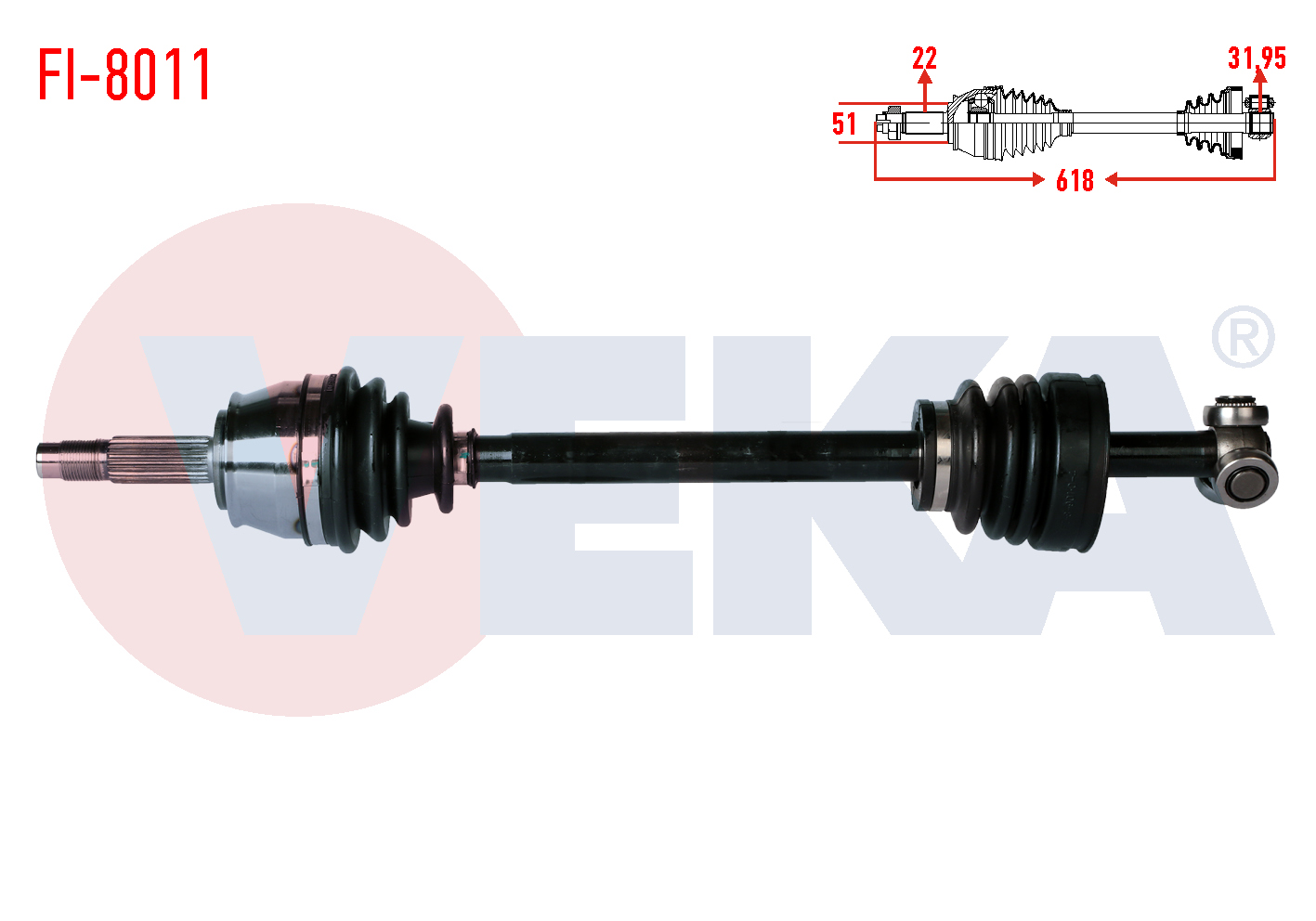VEKA FI-8011 | Komple Aks Sol Ön Fiat Doblo (119,223) 1.9 D Uzunluk 618 mm 2001-2010