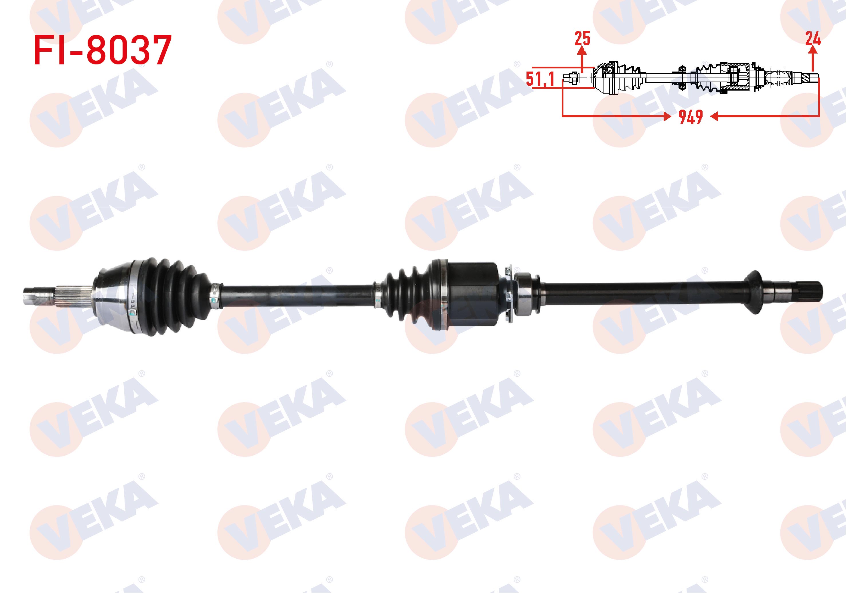 VEKA FI-8037 | Komple Aks Sağ On Fiat Linea (323) 1.3 Mjt 90 Hp Uzunluk 949mm 2007 -