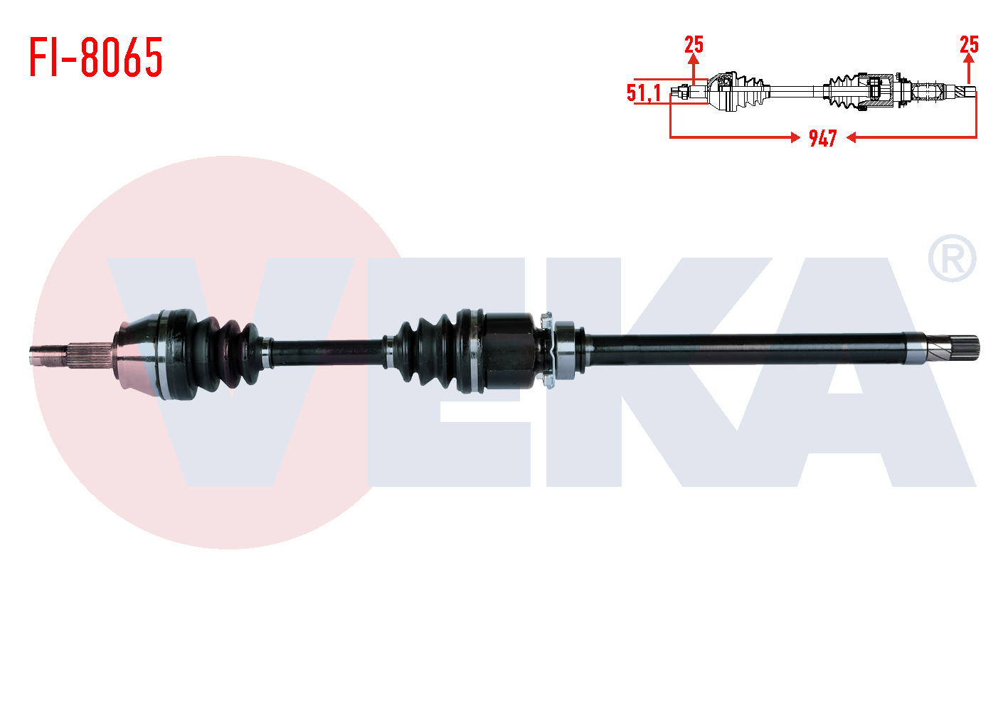 VEKA FI-8065 | Komple Aks Sağ On Uzunluk 947mm Fiat Linea 1.6 Mjt 2007-/ Grande Punto 1.3 Mjt Euro 4 2005-2012