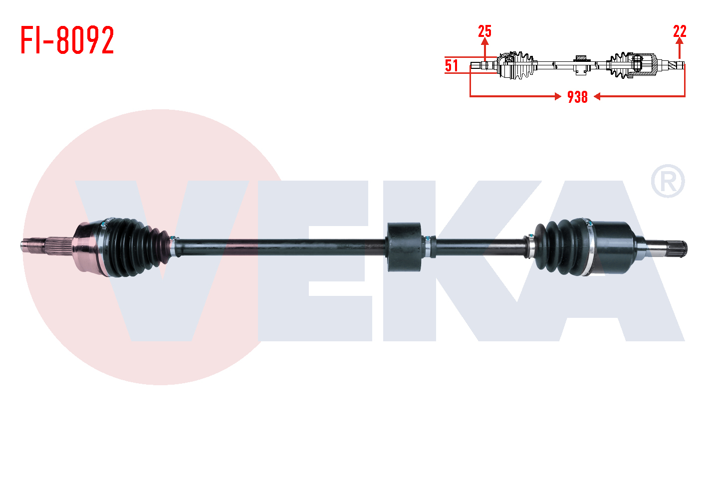 VEKA FI-8092 | Komple Aks Sağ On Fiat Stilo (192) 1.6 16V M-T Uzunluk 938mm 2001-2010