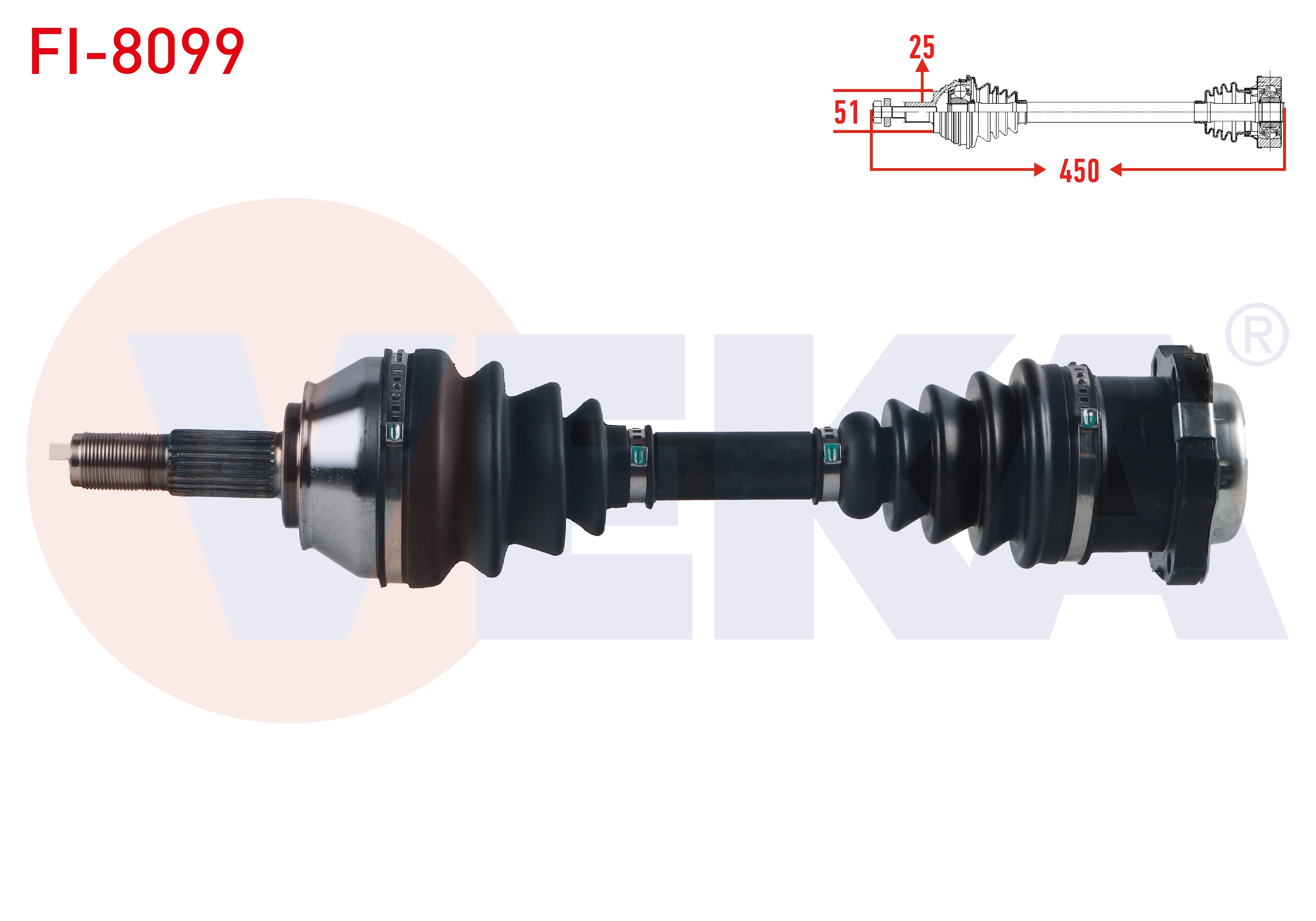 VEKA FI-8099 | Komple Aks Sol Ön Fiat Punto 1.3 JTD-1.9 JTD 5 Vites M-T Uzunluk 450mm 1999-2009