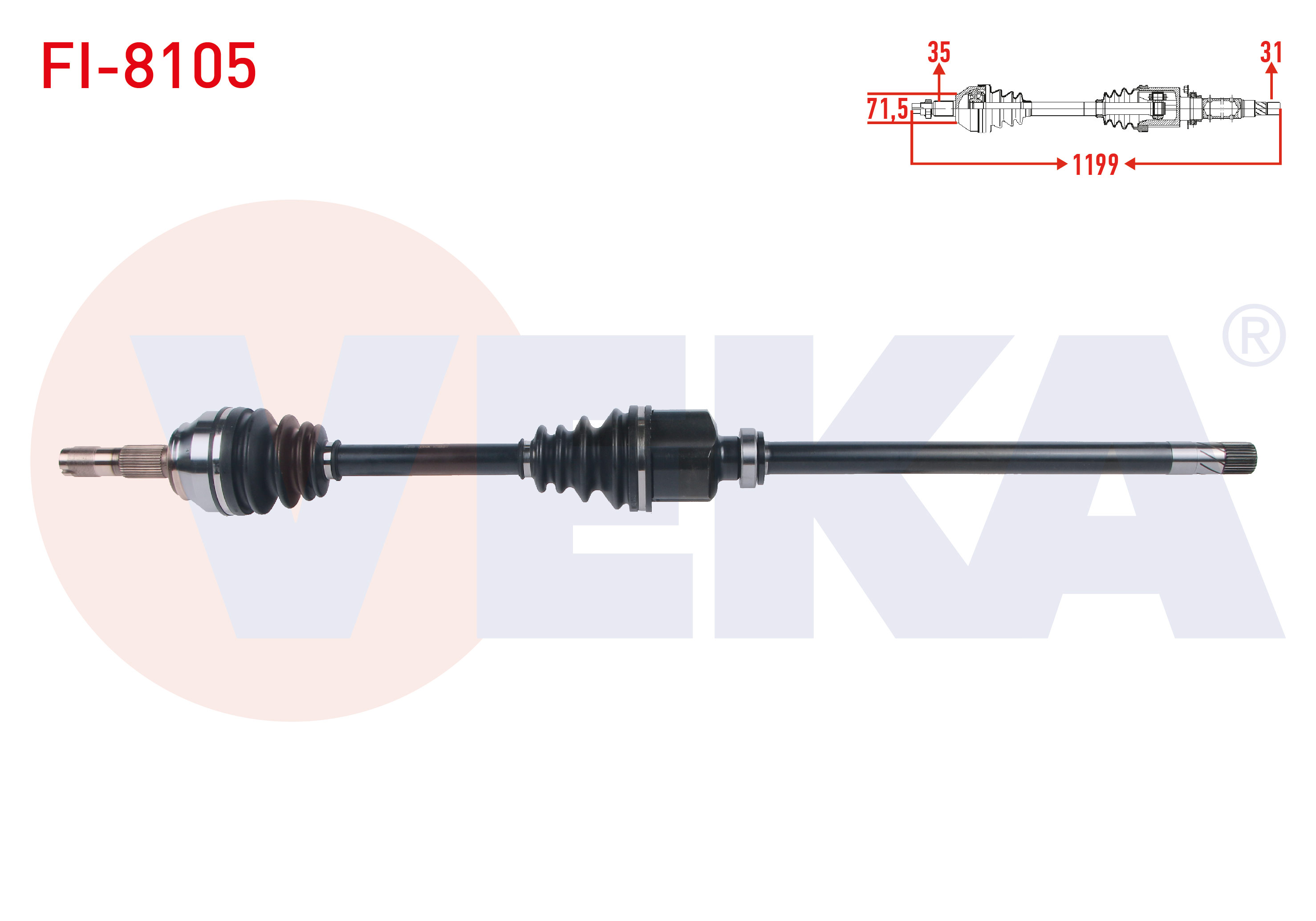 VEKA FI-8105 | Komple Aks Sağ On Uzunluk 1199mm Fiat Ducato 3.0 Mjt A-T / M-T 2006-2014 / Citroen Jumper III 3.0 HDI A-T / M-T 2006-2014 / Peugeot Boxer III 3.0 HDI A-T / M-T 2006-2014