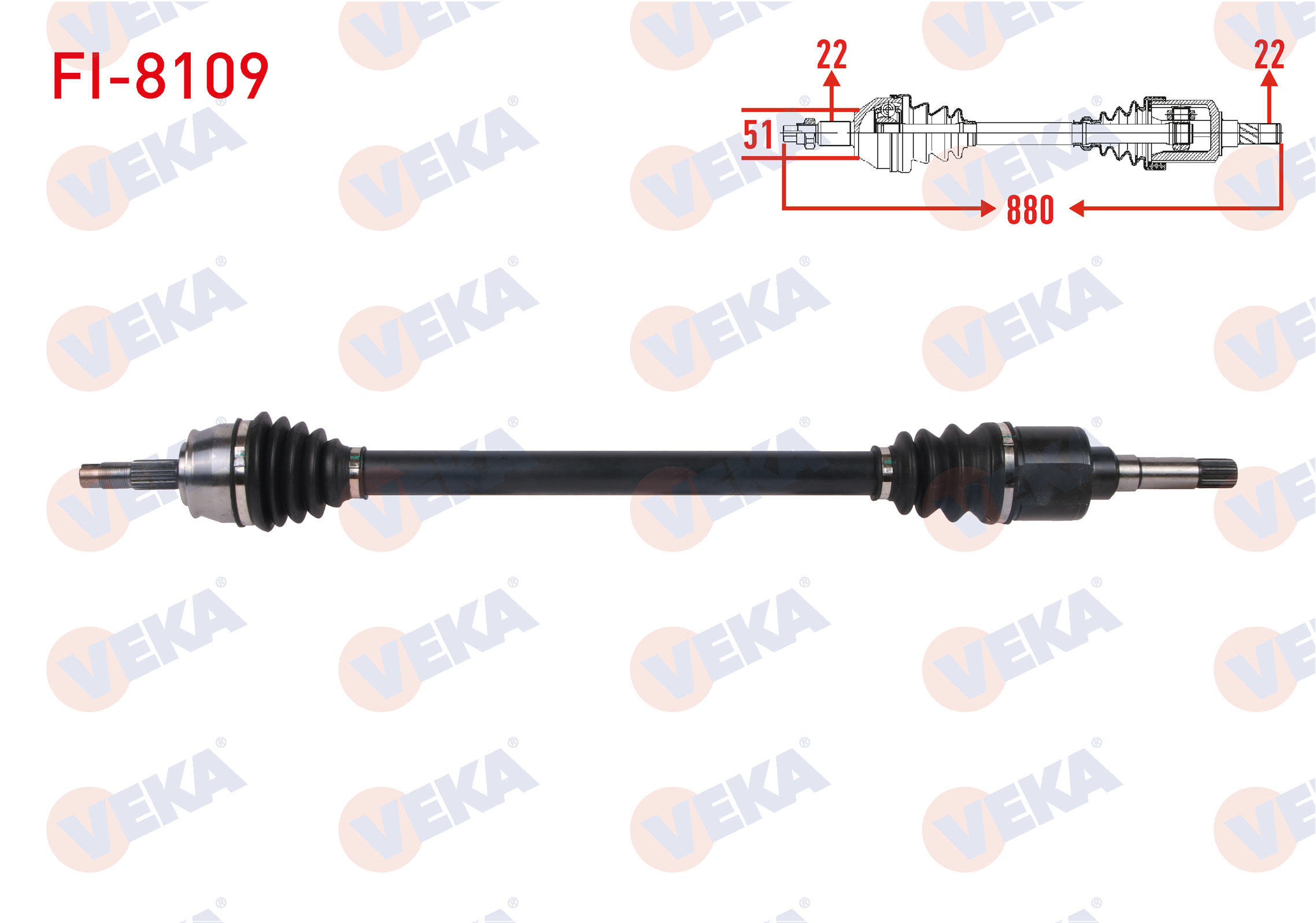 VEKA FI-8109 | Komple Aks Sağ On Uzunluk 880mm (Kalın Mil) Fiat Fiorino 1.4İ M-T 2007-/ Citroen Nemo 1.4İ M-T 2007-/ Peugeot Bipper 1.4İ 2008 -