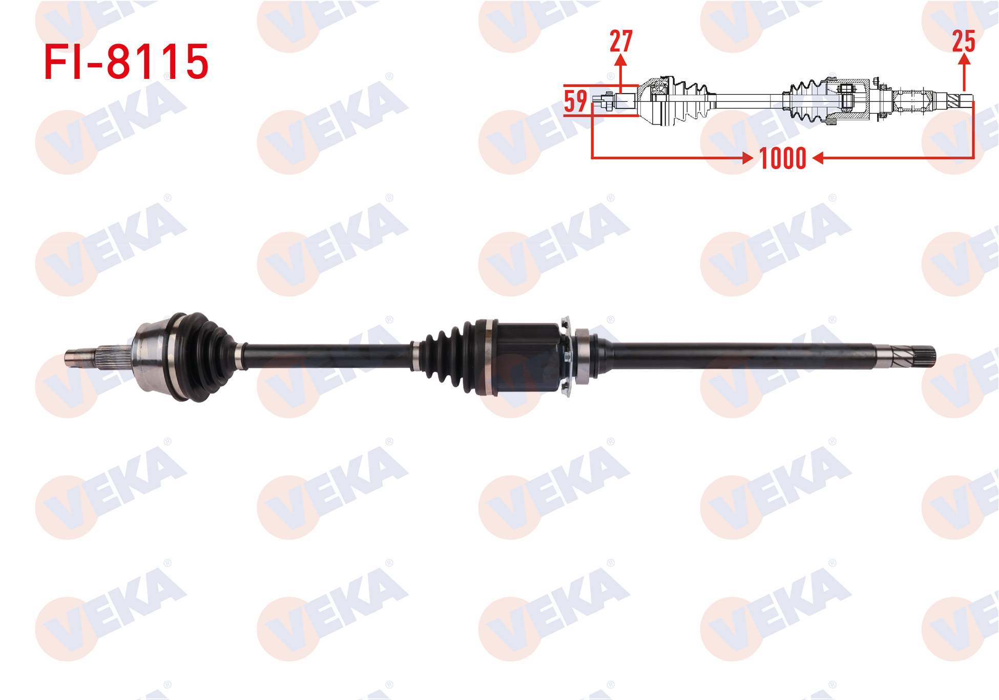 VEKA FI-8115 | Komple Aks Sağ On Uzunluk 1000mm Fiat 500 X 1.6 Mjt 6At / 6Mt 2014-/ Jeep Renegade 1.6 Crd 6At / 6Mt 2014 -