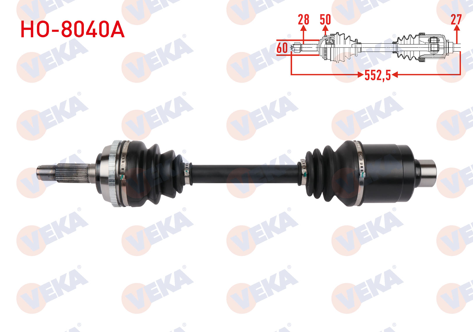 VEKA HO-8040A | Komple Aks Sol Ön Uzunluk 552,5mm ABS'li 50 Dıs Honda Accord V 2.0 1993-1998