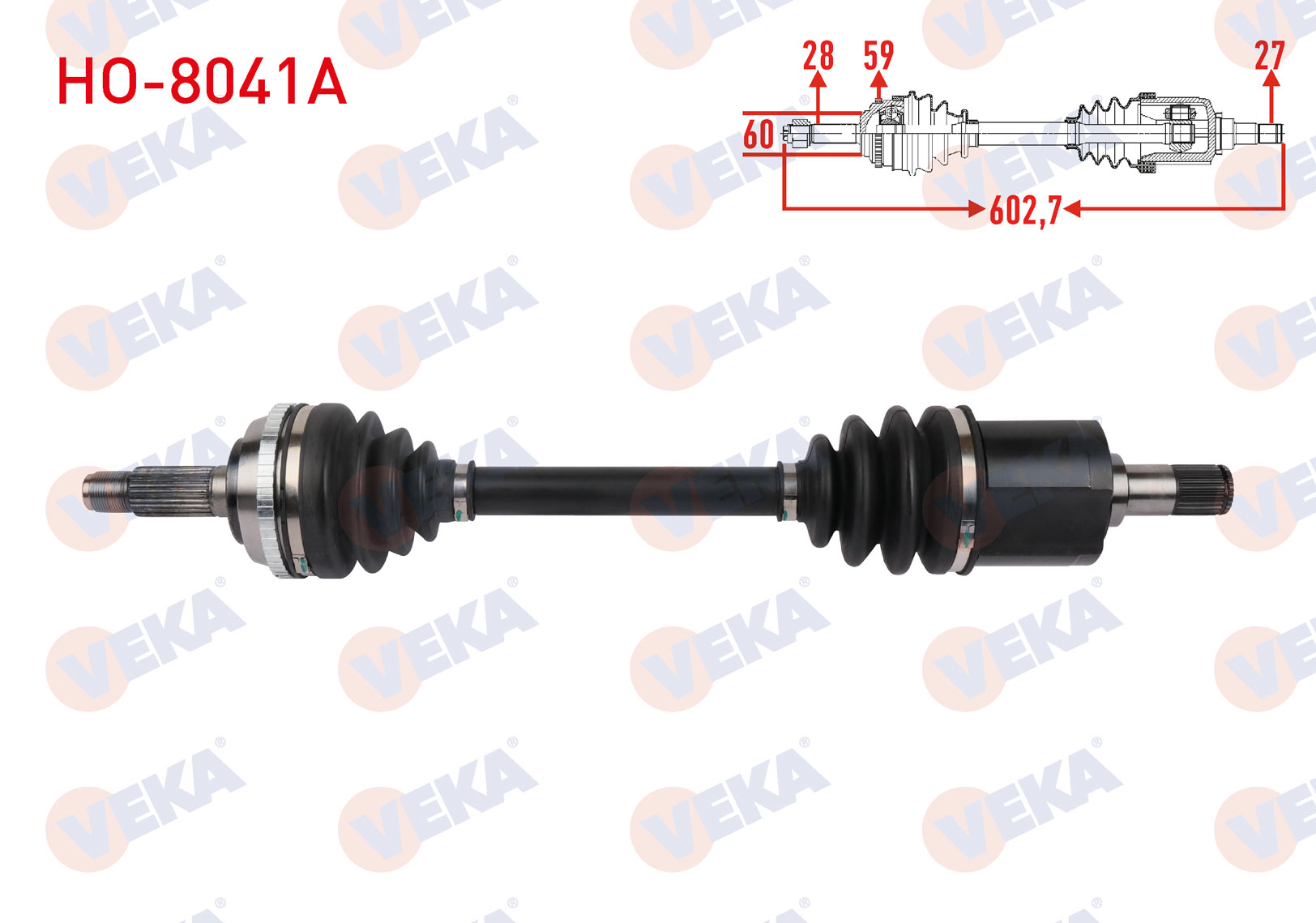 VEKA HO-8041A | Komple Aks Sağ On Uzunluk 602,7mm ABS'li 50 Dıs Honda Accord V 2.0 1993-1998