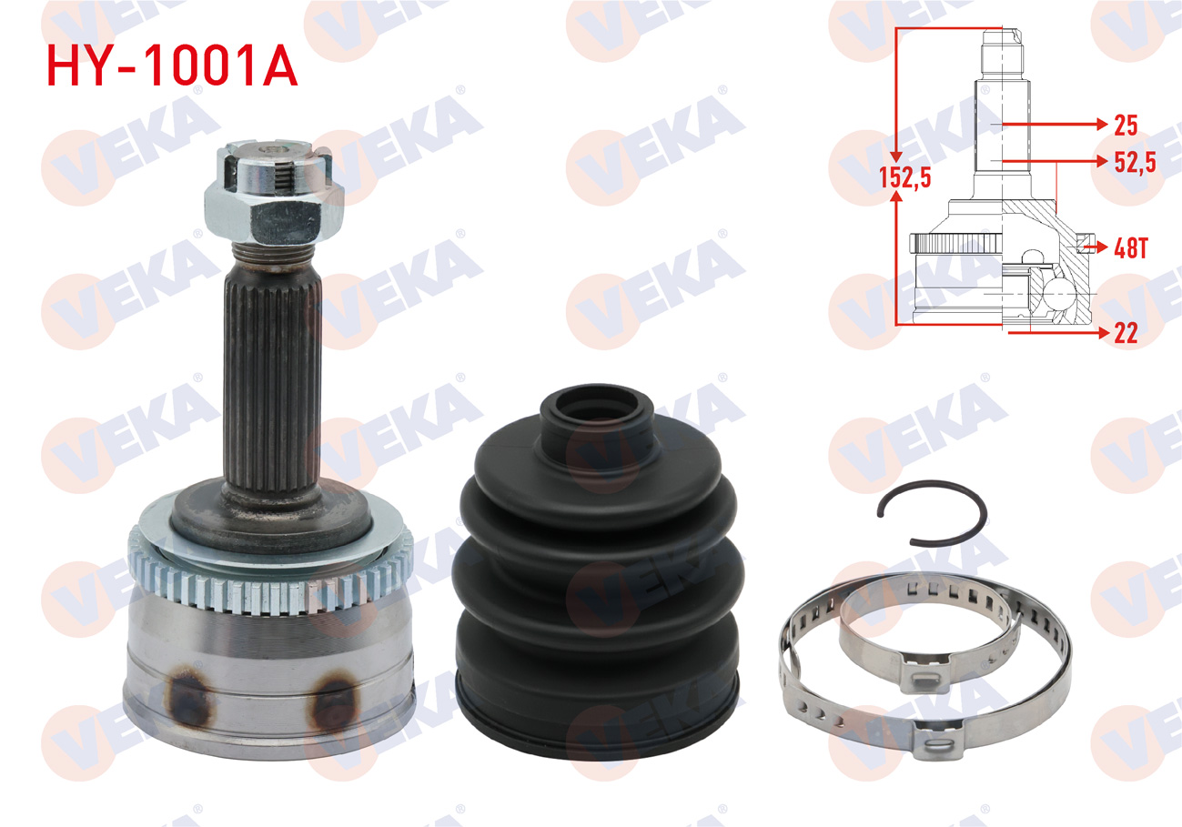 VEKA HY-1001A | Aks Kafası Sol-Sağ On Dıs Hyundai Accent Era 1.4İ 16V ABS'li 48 Dıs 25X22x52.5 Uzunluk 152,5 mm 2006-2012
