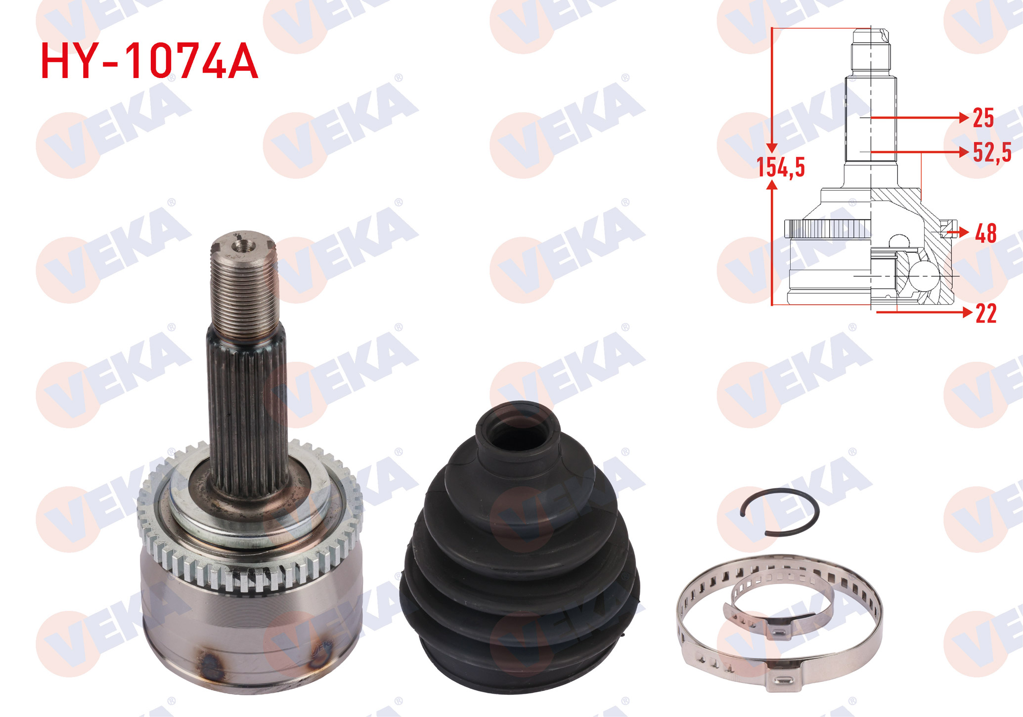 VEKA HY-1074A | Aks Kafası Sol-Sağ On Dıs ABS'li 48 Dıs Uzunluk 154,5mm Hyundai i20 (Pb, Pbt) 1.4 Cvvt A-T 2008-2015