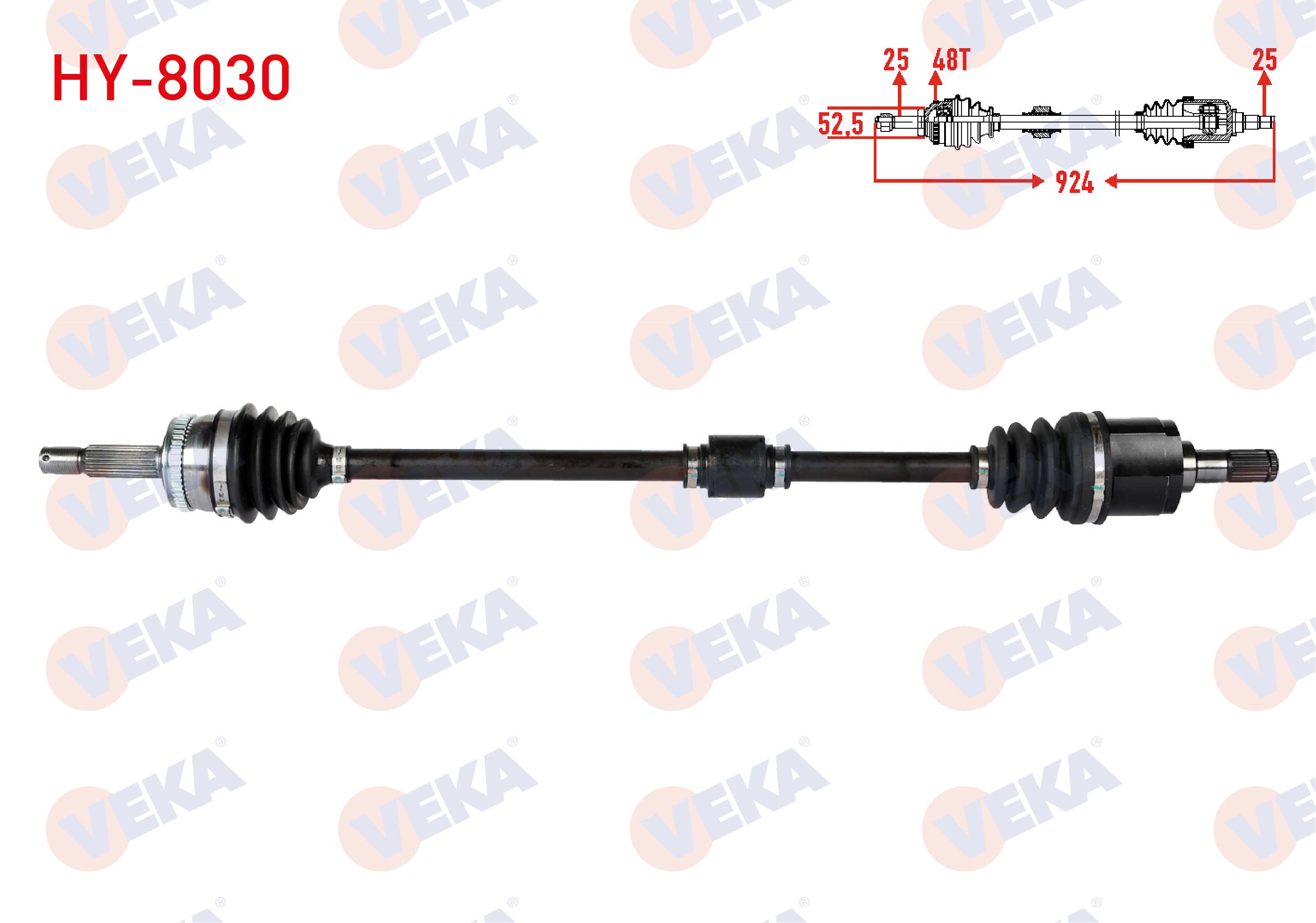 VEKA HY-8030 | Komple Aks Sağ On Uzunluk 924mm ABS'li 48 Dıs Hyundai Accent Era 1.4İ 16V-1.6 Cvvt 2006-2012