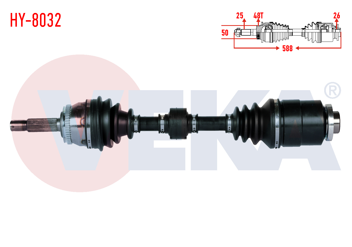 VEKA HY-8032 | Komple Aks Sağ On Hyundai Accent Era 1.5 CRDI ABS'li 48 Dıs Uzunluk 588mm 2006-2012 / Kia Rio II (Jb) 1.5 CRDI 2005-2011