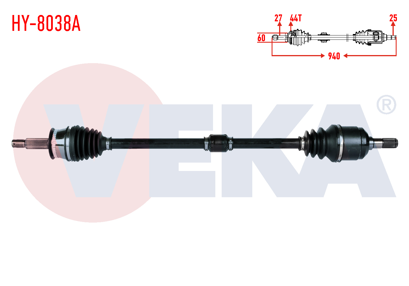 VEKA HY-8038A | Komple Aks Sağ On Hyundai Elantra 1.6İ A-T ABS'li 44 Dıs Uzunluk 940mm 2001-2007