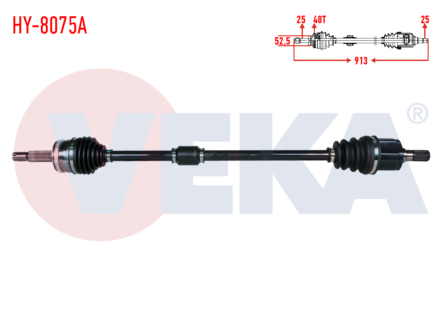 VEKA HY-8075A | Komple Aks Sağ On ABS'li 48 Dıs Uzunluk 913mm Hyundai Getz (Tb) 1.3İ-1.4İ-1.6İ 2002-2008