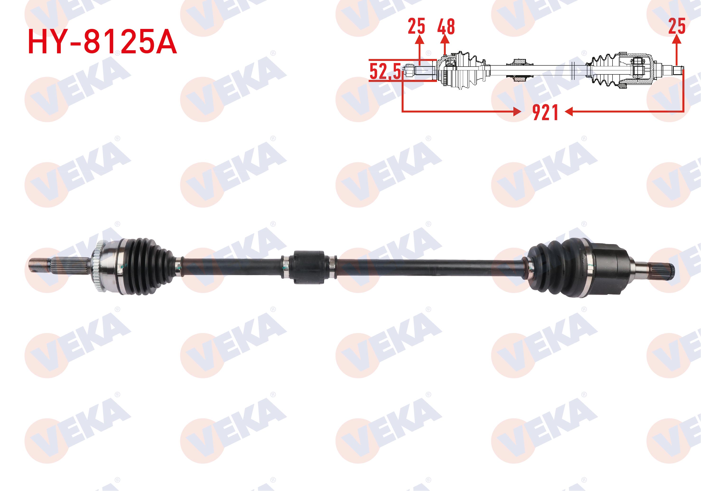 VEKA HY-8125A | Komple Aks Sağ On Uzunluk 921mm ABS'li 48 Dıs Hyundai i20 1.4 M-T 2015 -