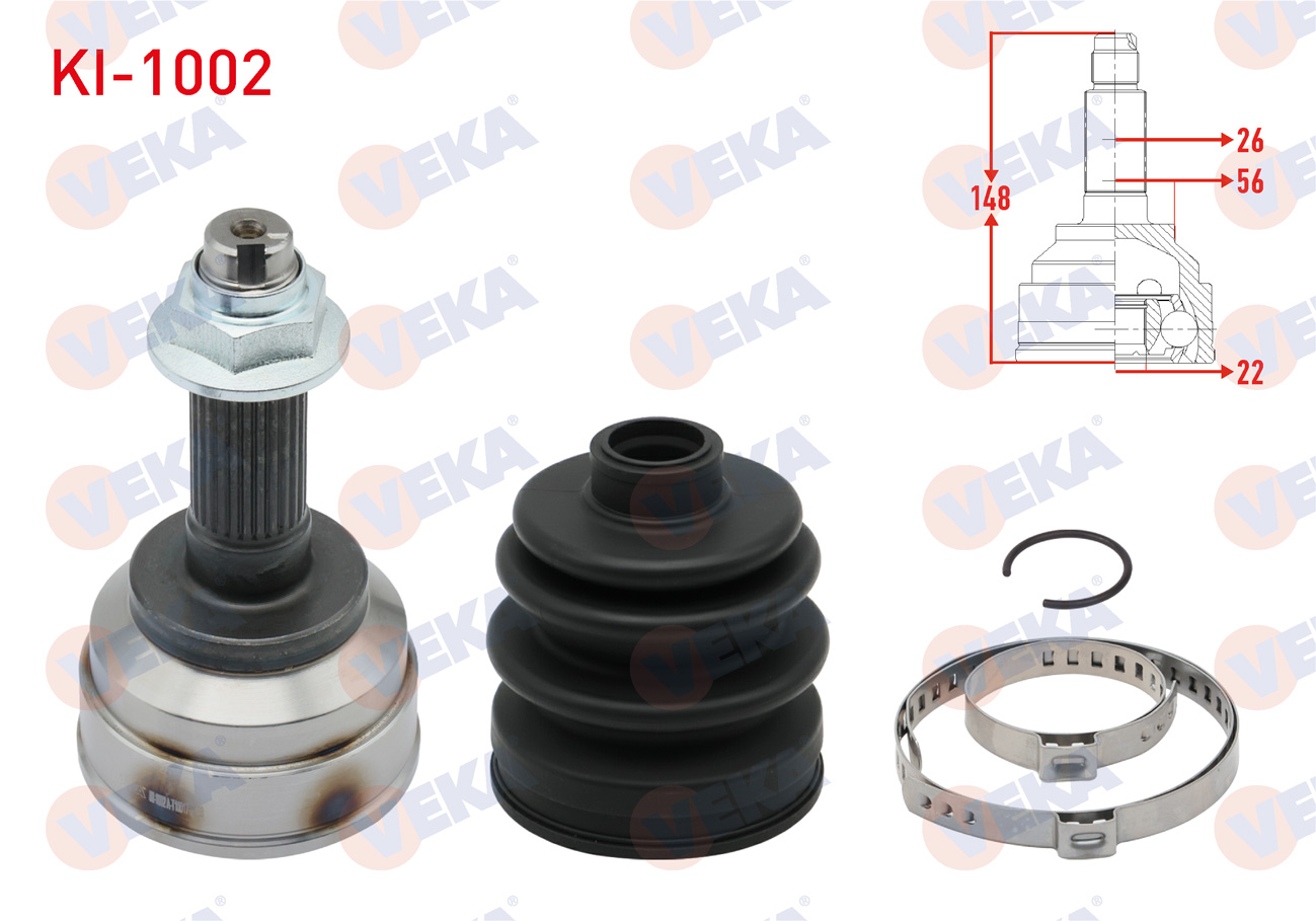 VEKA KI-1002 | Aks Kafası Sol-Sağ On Dıs Kia Sephıa (Fa) 1.5İ 16V 26X22x56 Uzunluk 148 mm 1993-2001