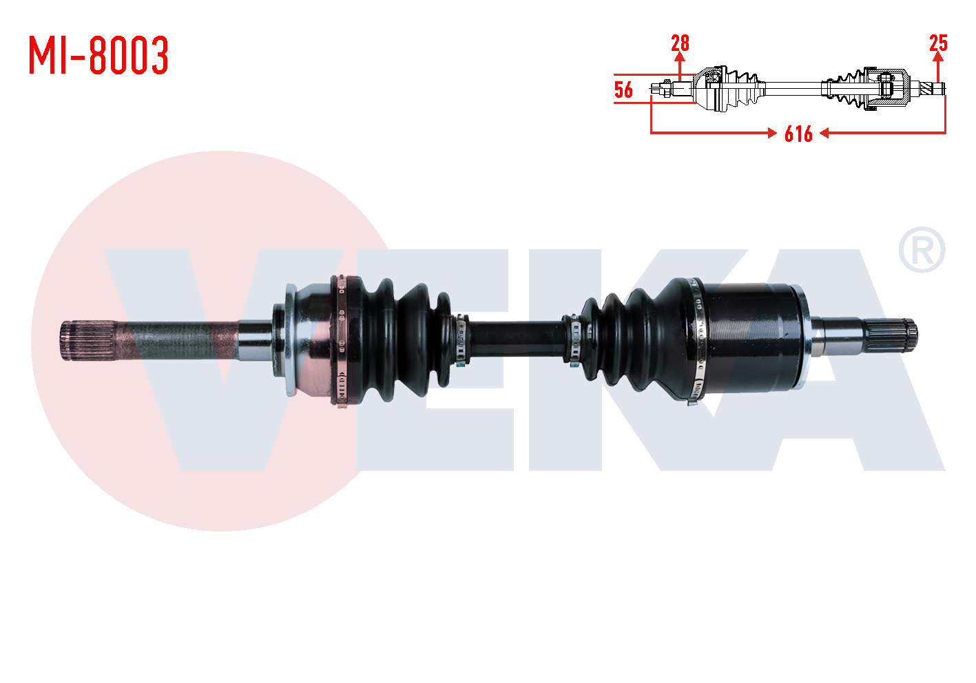 VEKA MI-8003 | Komple Aks Sol Ön Uzunluk 614mm Mitsubishi L 200 (K7t,K6t) 2.5 TD 4X4 1996-2007 / Pajero II (V3w,V2w,V4w) 2.5 TD 1990-1999