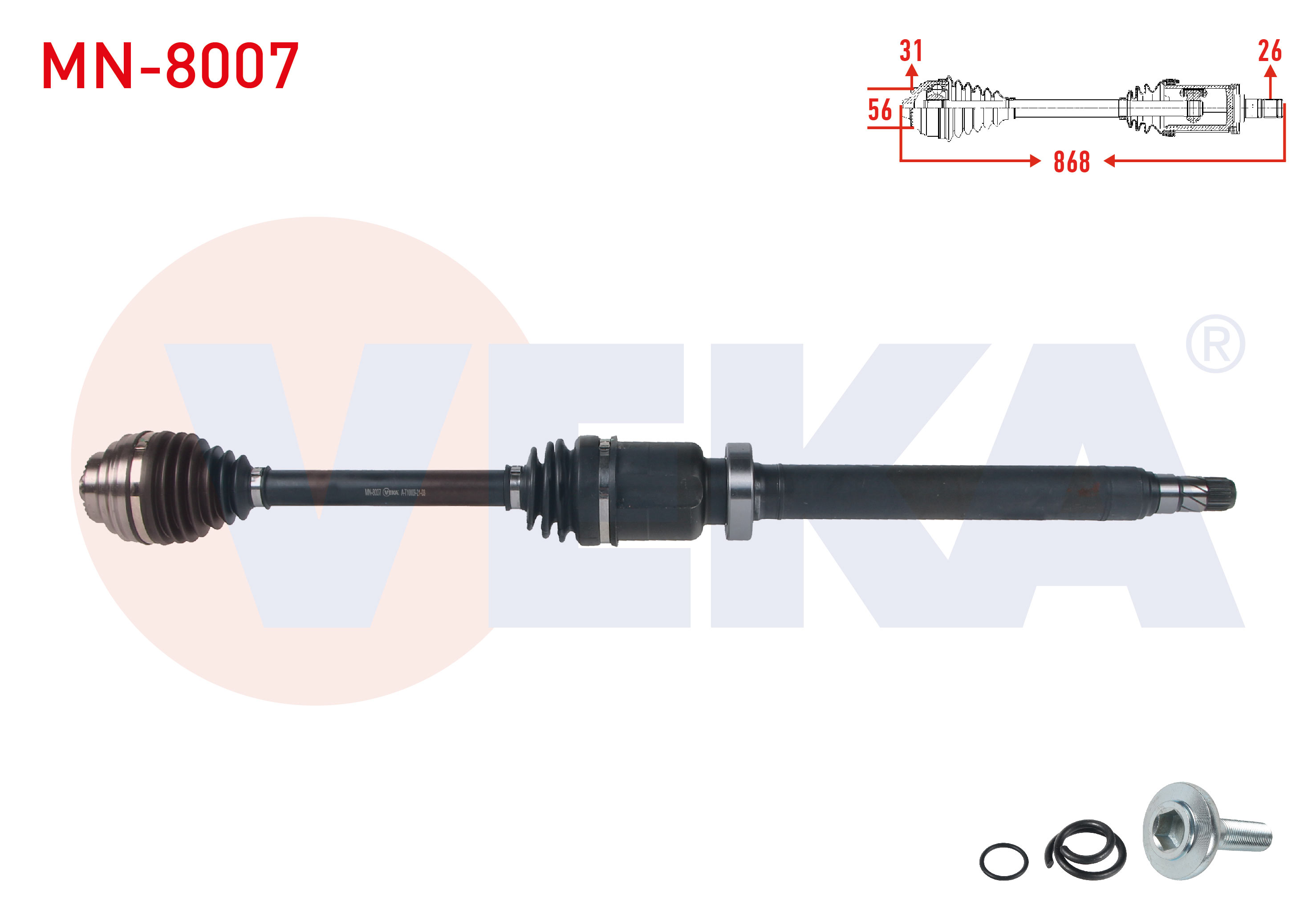 VEKA MN-8007 | Komple Aks Sağ On Uzunluk 868mm Mini Cooper (F55) 1.5-1.5 D A-T 2013 -