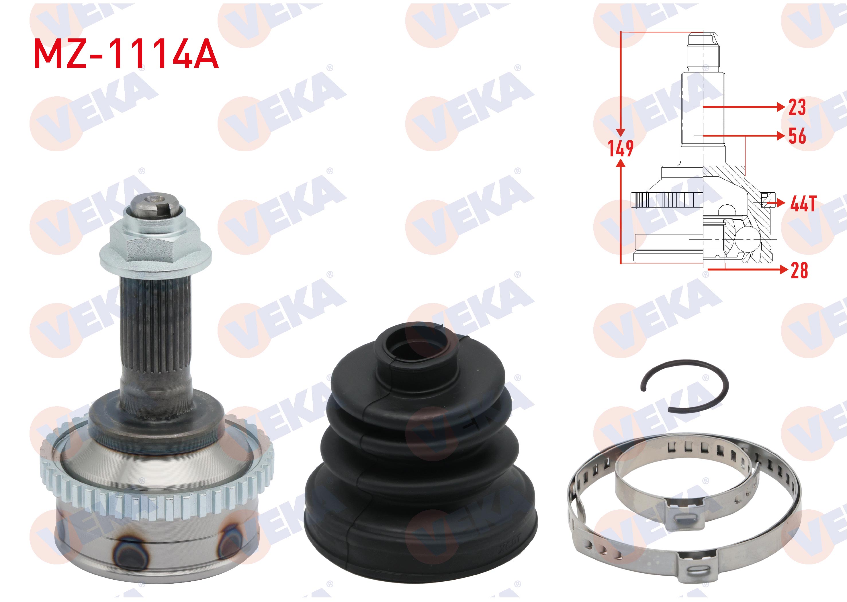 VEKA MZ-1114A | Aks Kafası Sol-Sağ On Dıs Mazda 626 V (Gf) 2.0İ 16V ABS'li 44 Dıs A-T / M-T 28X23x56 Uzunluk 149 mm 1997-2002