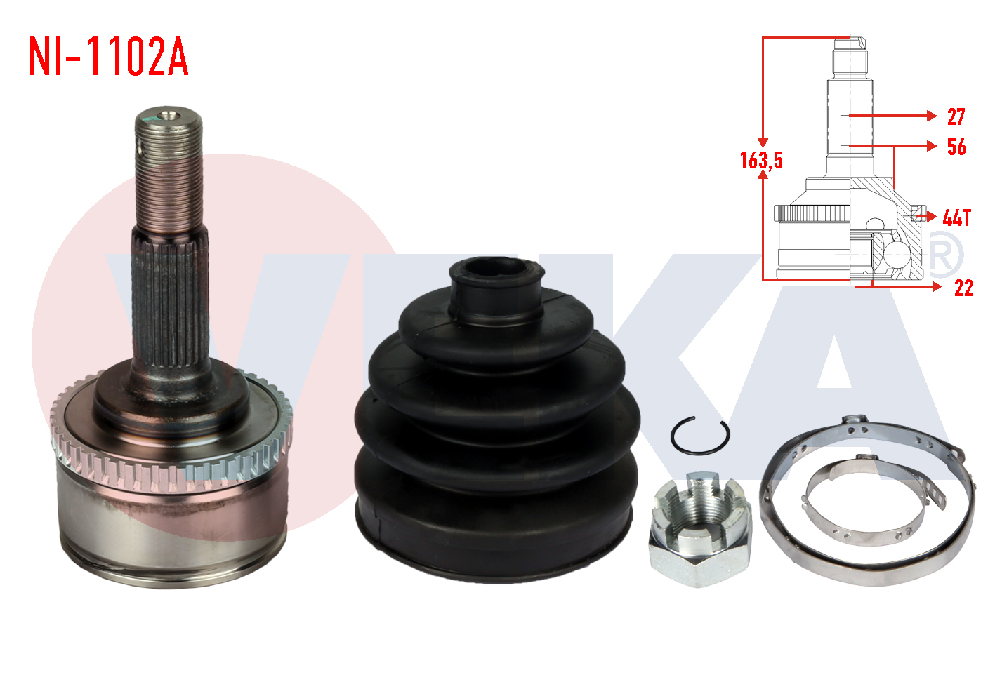 VEKA NI-1102A | Aks Kafası Sol-Sağ On Dıs Nissan Primera (P11) 1.6İ 16V ABS'li 44 Dıs 27X22x56 Uzunluk 165,4 mm 1996-2001