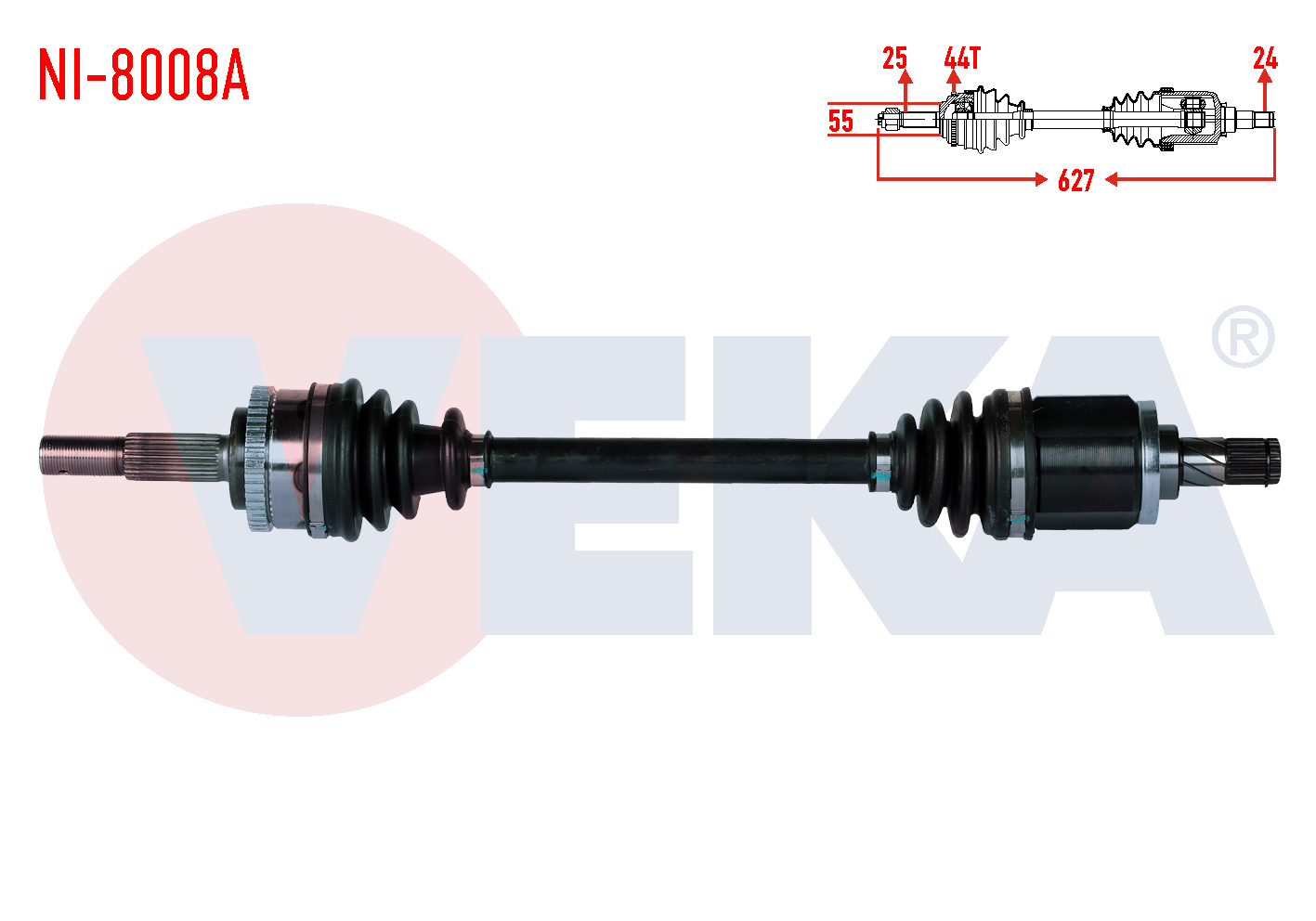 VEKA NI-8008A | Komple Aks Sol Ön Nissan Almera II (N16) 1.5İ 16V A-T / M-T ABS'li 44 Dıs Uzunluk 627 mm 2000-2007