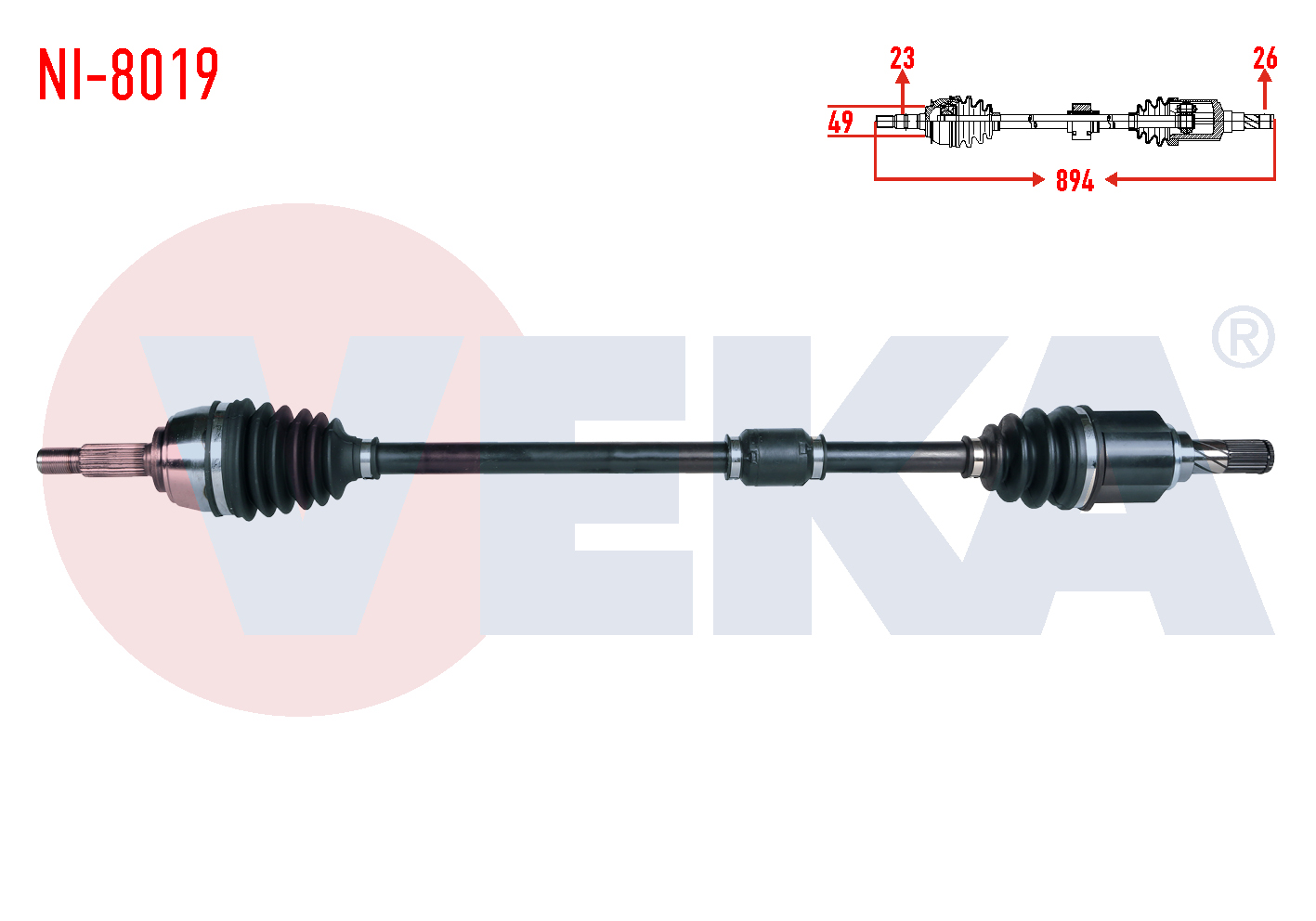 VEKA NI-8019 | Komple Aks Sağ On Nissan Micra (K12) 1.2İ 16V M-T Uzunluk 894mm 2003-2010