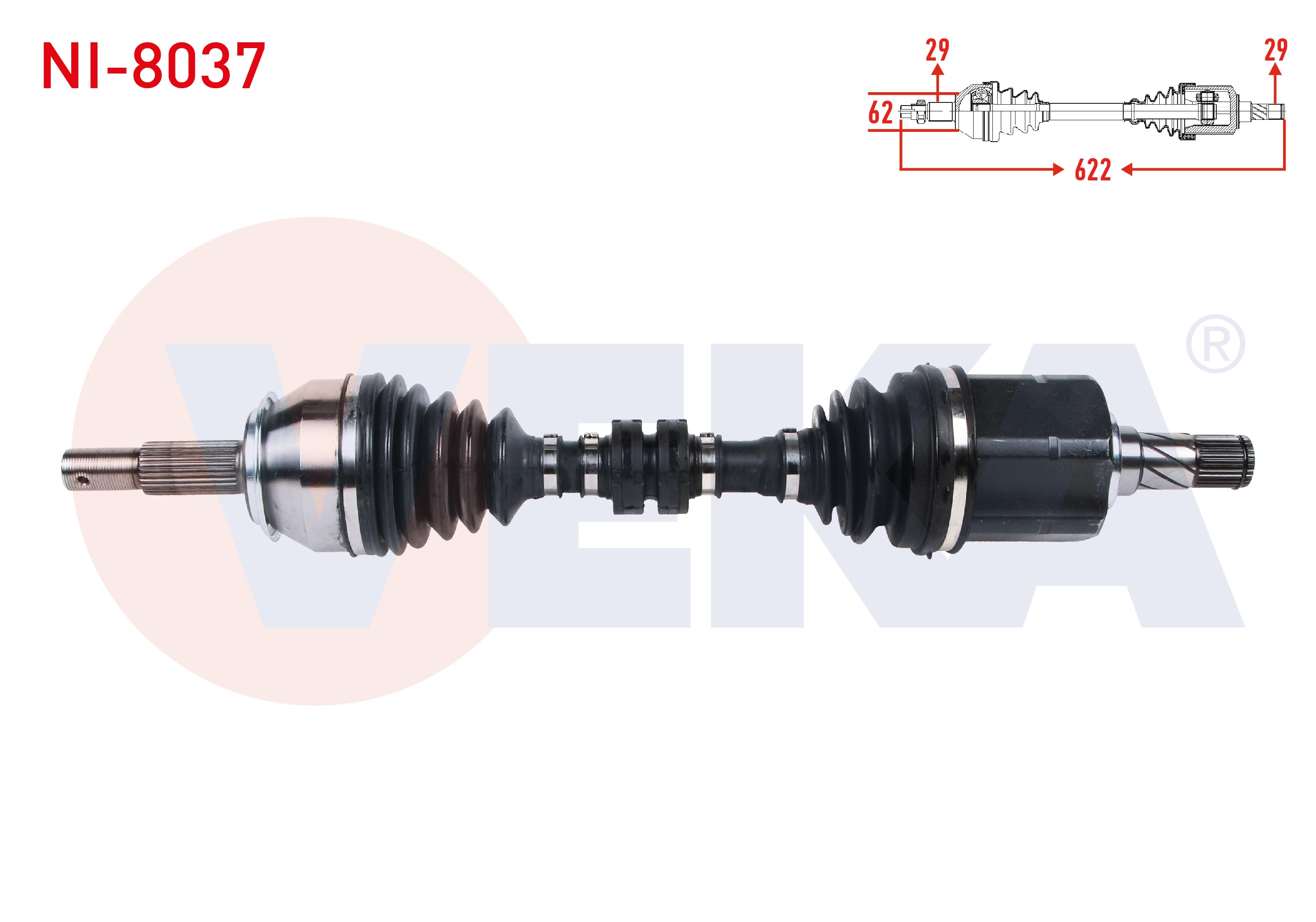 VEKA NI-8037 | Komple Aks Sol Ön Uzunluk 622mm Nissan Qashqai (J11) 1.6 DCI 4X4 M-T 2014-/ Renault Kadjar 1.6 DCI M-T 2018 -