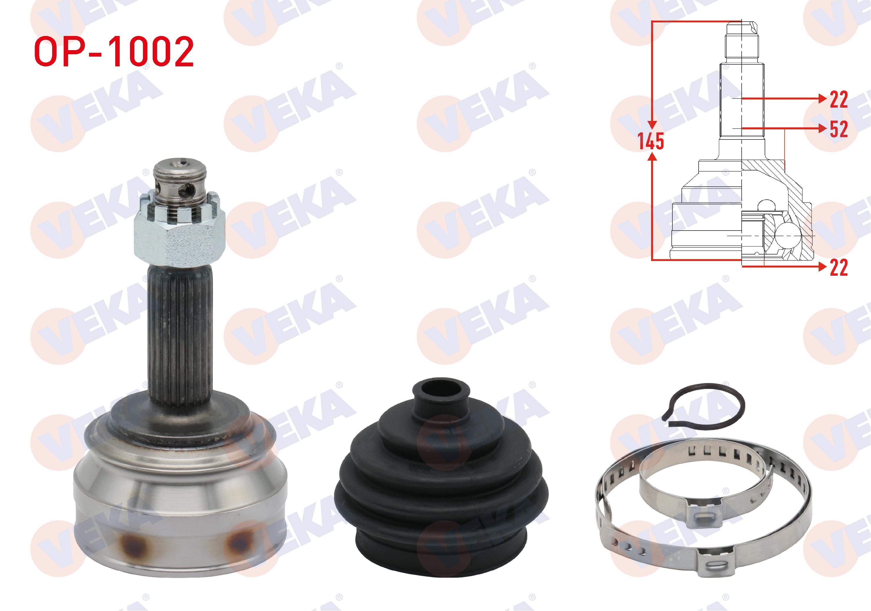 VEKA OP-1002 | Aks Kafası Sol-Sağ On Dıs Opel Ascona C 1.3 22X22x52 Uzunluk 145 mm 1981-1988