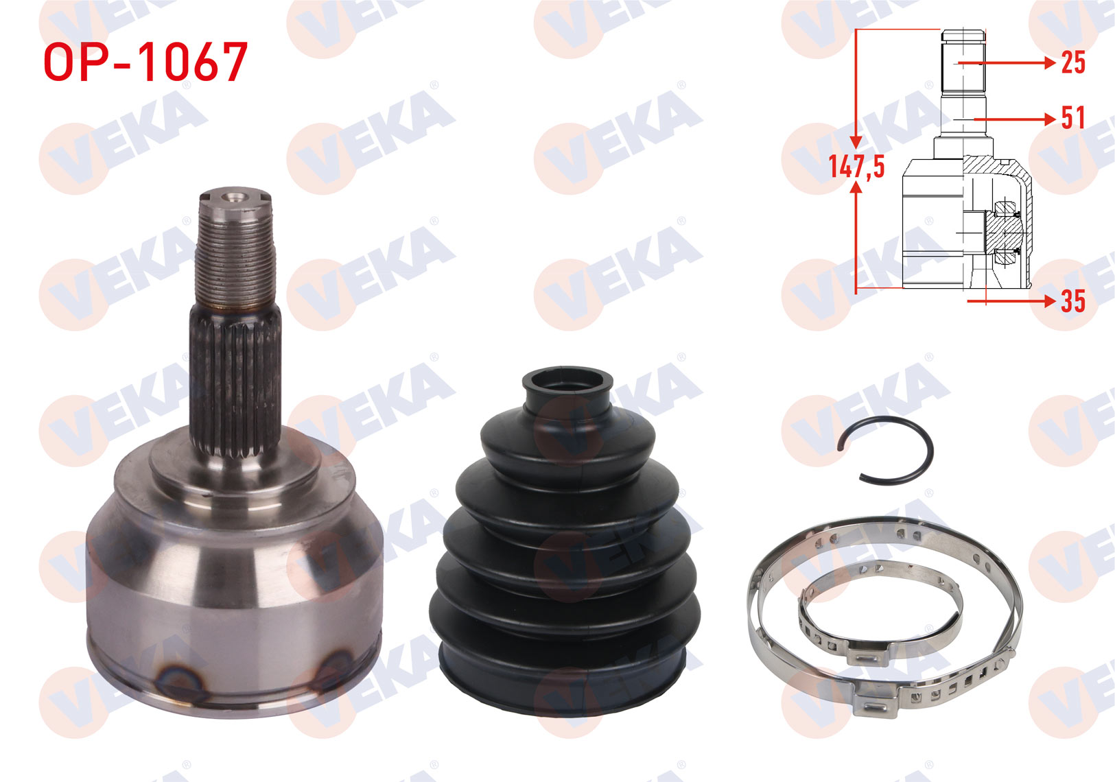 VEKA OP-1067 | Aks Kafası Sol-Sağ On Dıs 25X35x51 Uzunluk 147,5mm Opel Corsa D (S07) 1.6 T 2006-2014 / Corsa E (X15) 1.6 T 2015 -