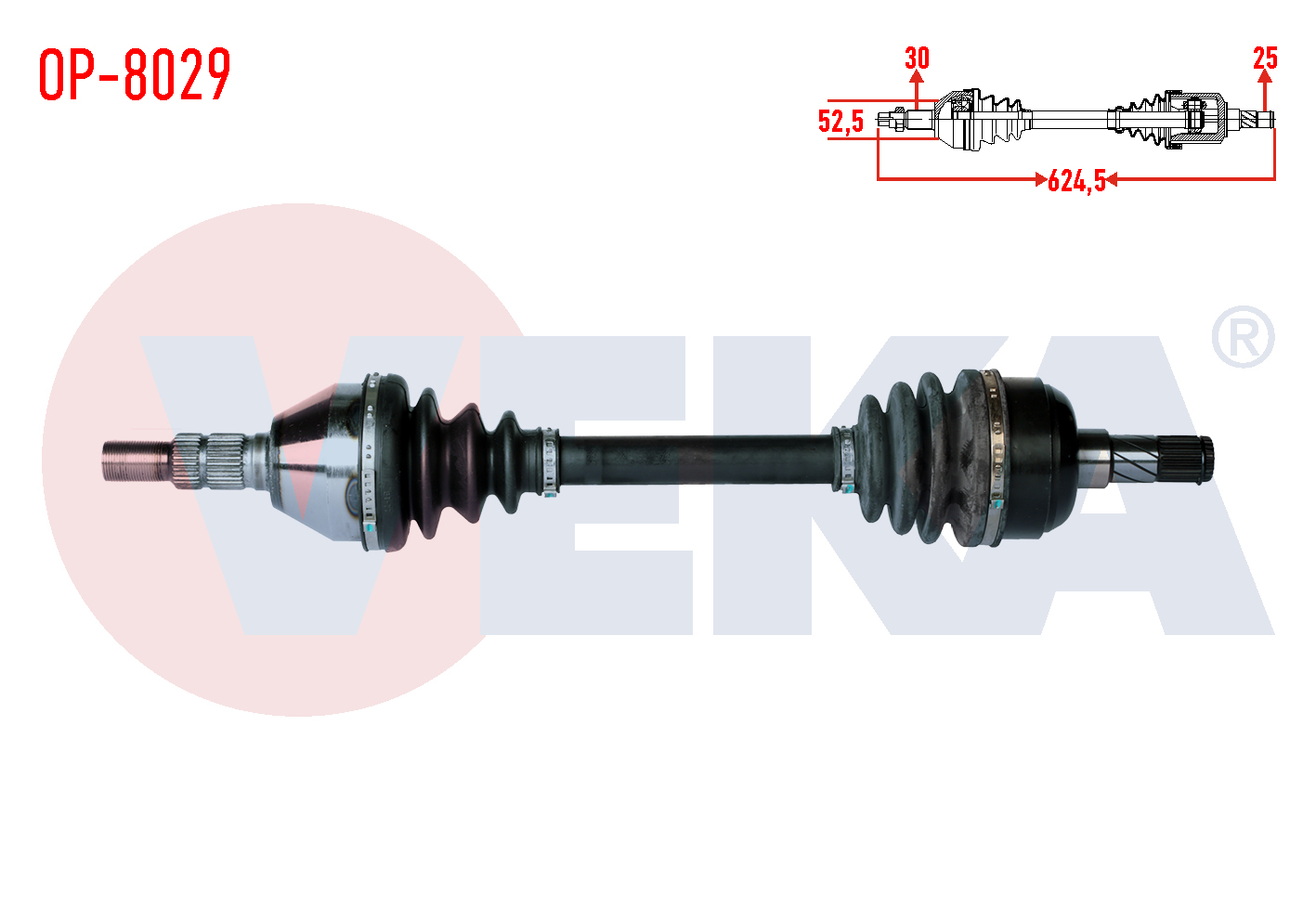 VEKA OP-8029 | Komple Aks Sol Ön Opel Insignia 1.6 T (A16let) M-T Uzunluk 624,5mm 2008 -