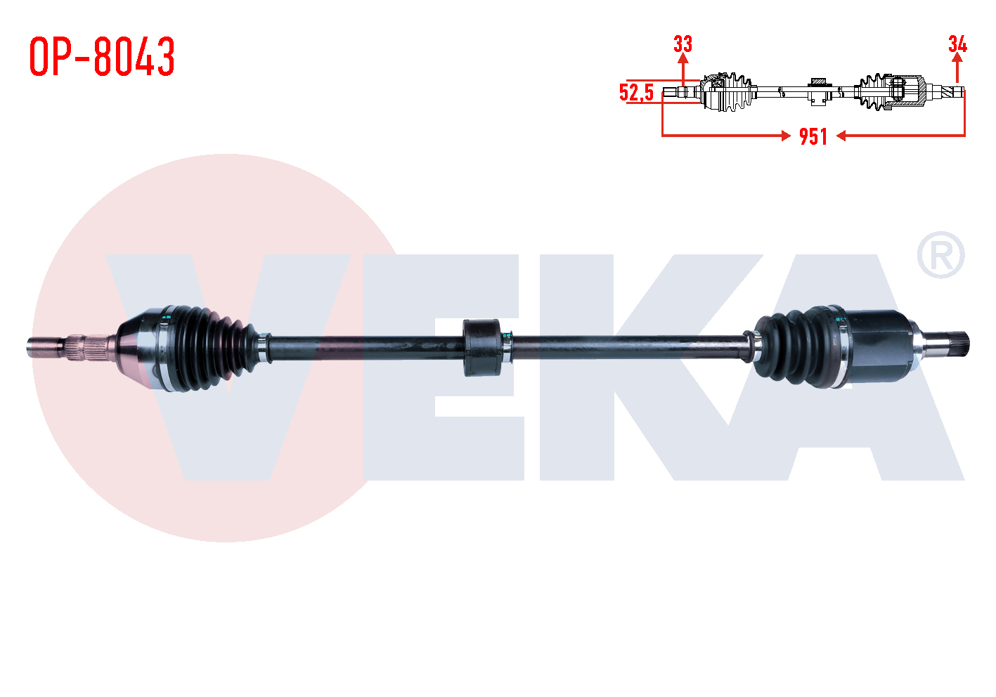 VEKA OP-8043 | Komple Aks Sağ On Opel Astra J 1.4 T-1.6İ A-T Uzunluk 951mm 2009-2016