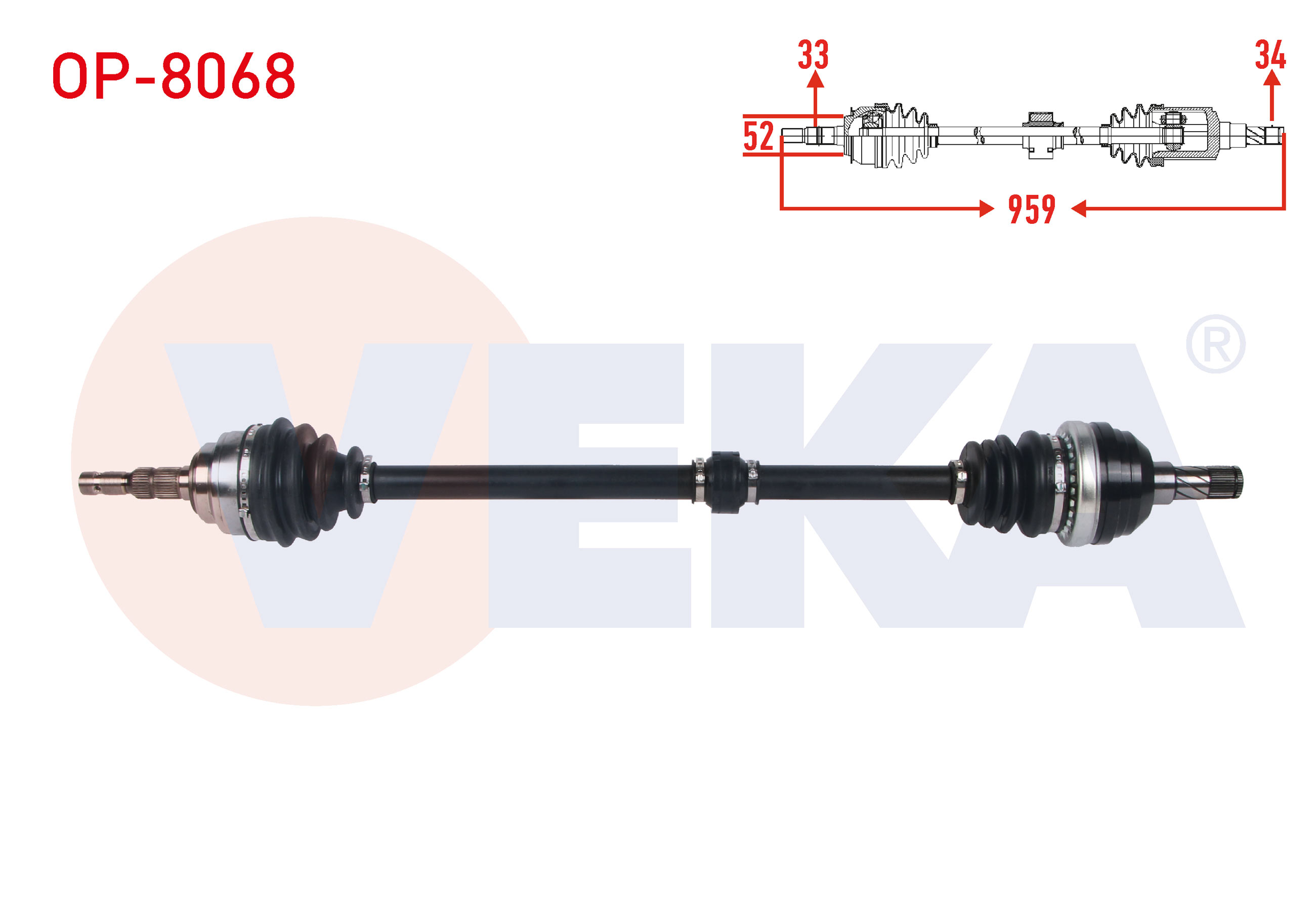 VEKA OP-8068 | Komple Aks Sağ On Uzunluk 959mm Opel Astra G 2.0 16V 1998-2005