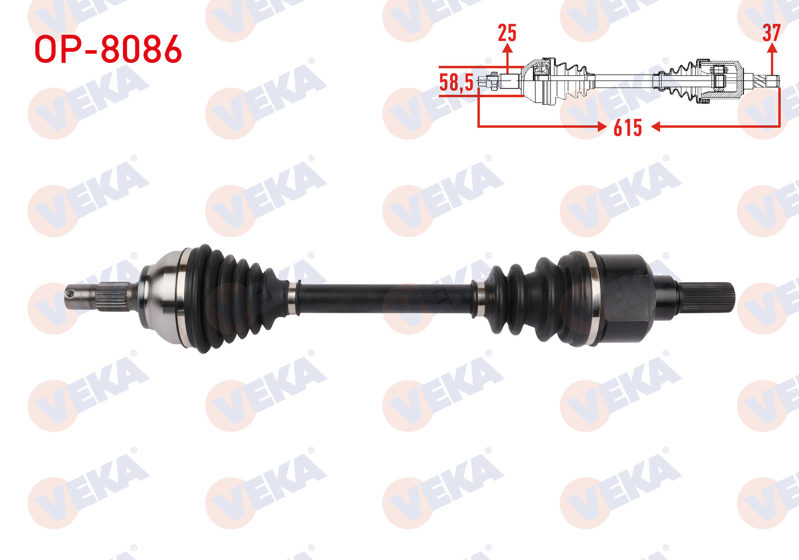VEKA OP-8086 | Komple Aks Sol Ön Uzunluk 615mm Opel Crossland X 1.2 2017-/ Citroen C3 Aircross II 1.2 2017 -