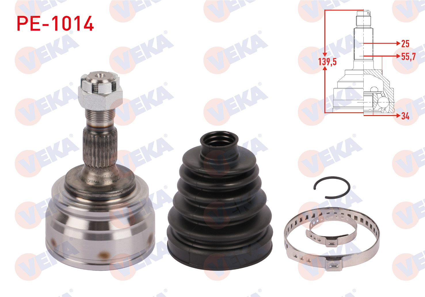 VEKA PE-1014 | Aks Kafası Sol-Sağ On Dıs Uzunluk 139,5mm Peugeot 208 II 1.2 A-T / M-T 2019-/ 1.5 Bluehdı A-T 2019-/ Opel Corsa F 1.2-1.5 D A-T / M-T 2019 -