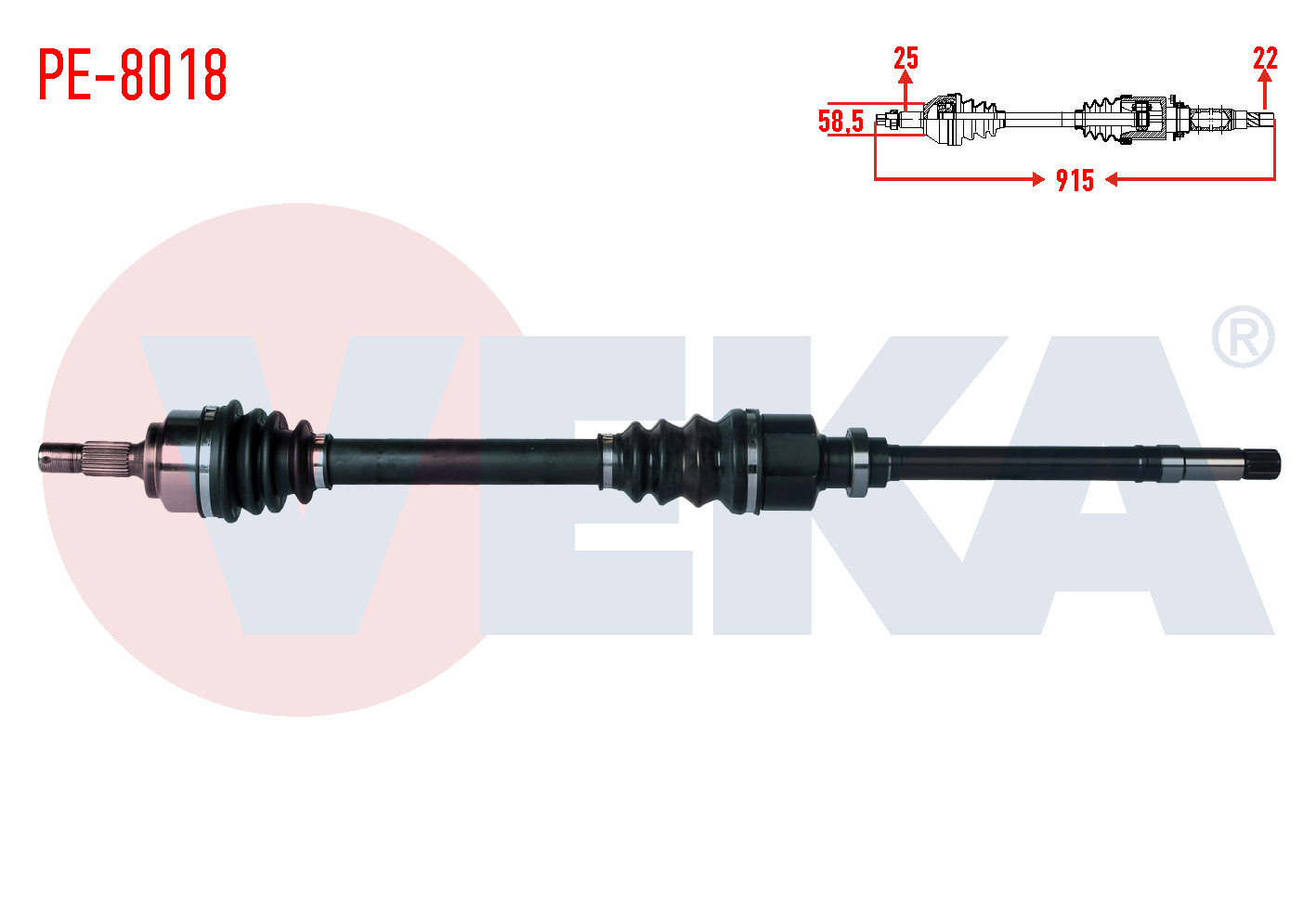 VEKA PE-8018 | Komple Aks Sağ On Peugeot 307 (3A / C) 1.4 Ma Şanzıman Uzunluk 915mm 2000-2007