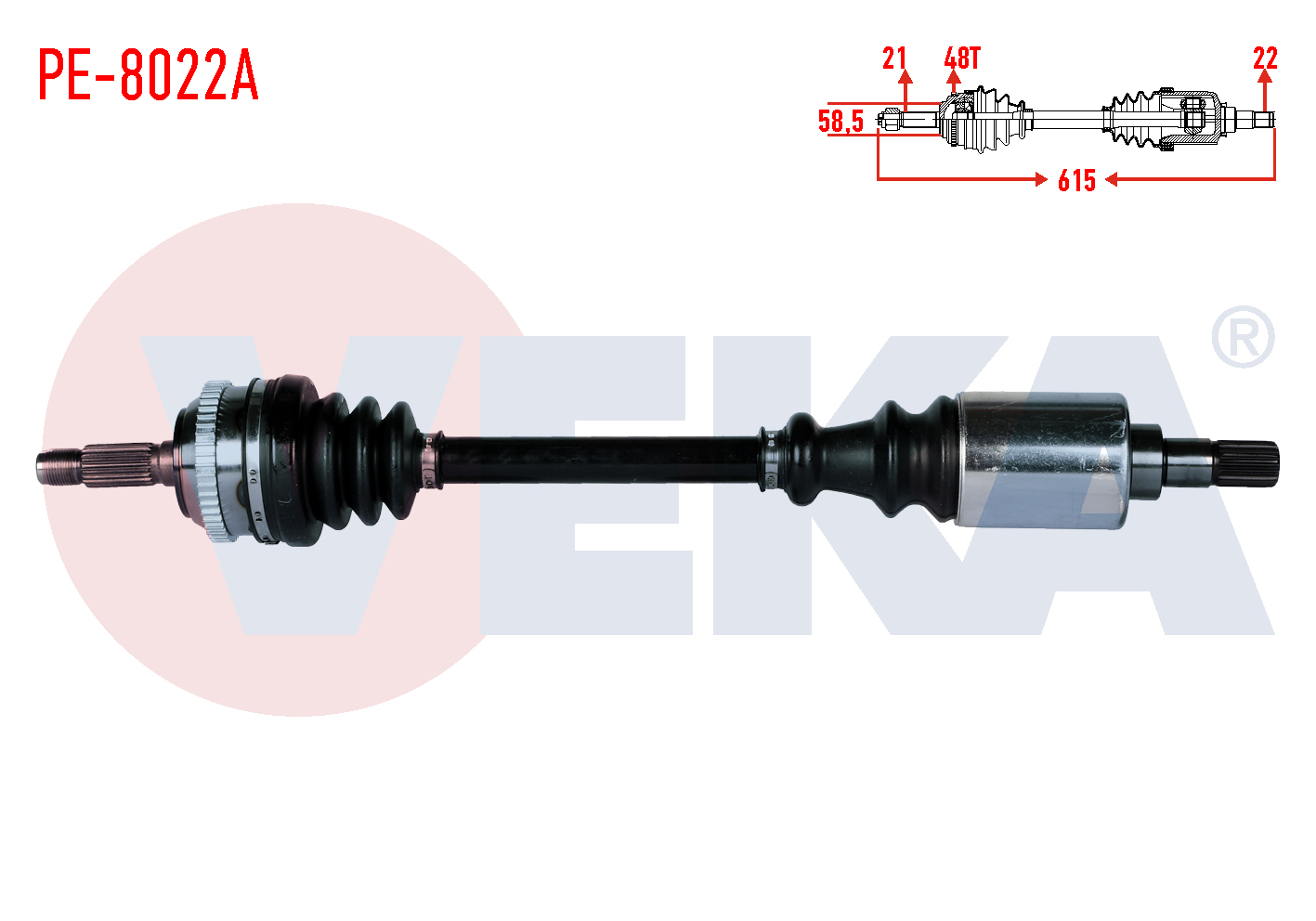 VEKA PE-8022A | Komple Aks Sol Ön Peugeot 106 II 1.6İ Gtı ABS'li 48 Dıs Uzunluk 615mm 1996-2002