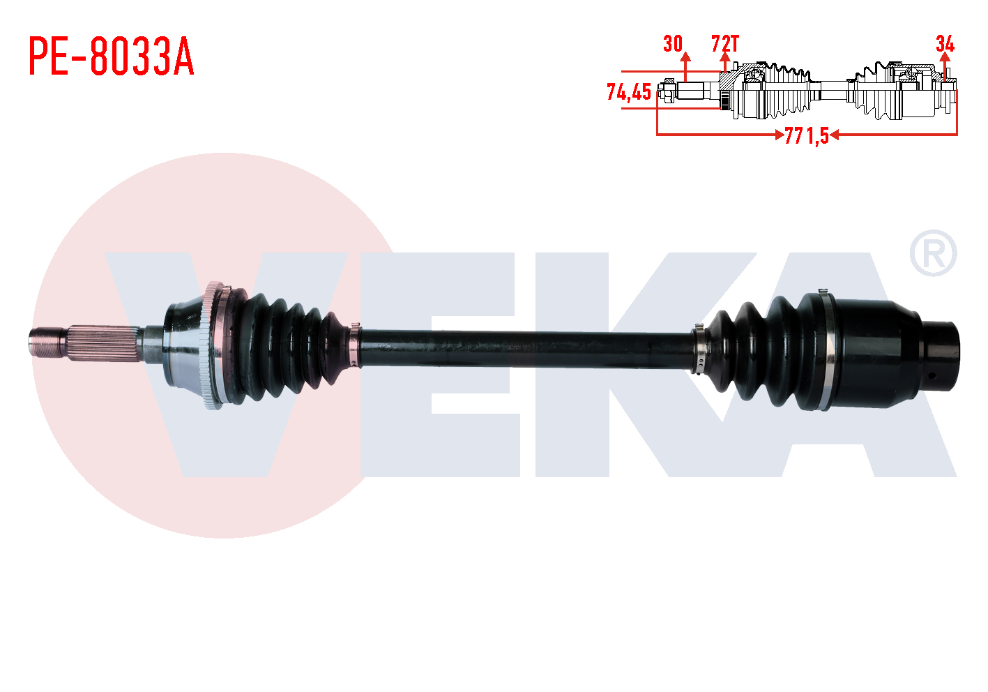 VEKA PE-8033A | Komple Aks Sağ On Karsan J10 2.3 D ABS'li 72 Dıs Uzunluk 771,5mm 2010 -