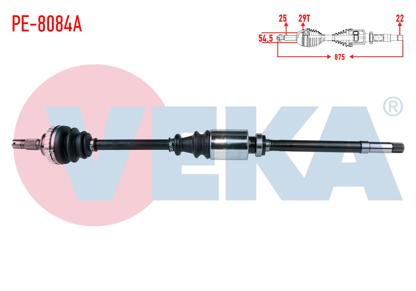 VEKA PE-8084A | Komple Aks Sağ On Peugeot 306 (7B,N3,N5) 1.4İ ABS'li 29 Dıs Uzunluk 875mm 1993-2002