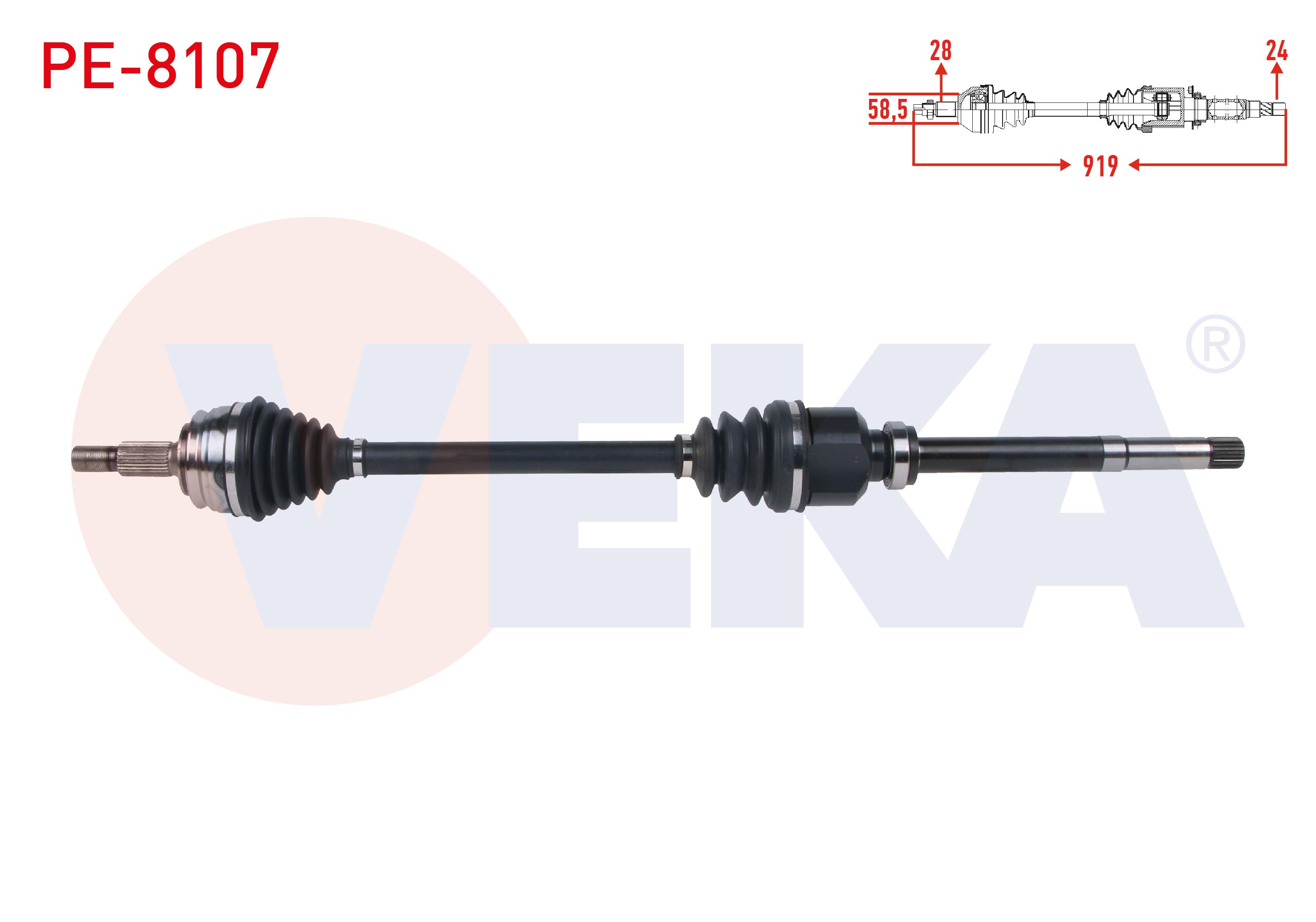 VEKA PE-8107 | Komple Aks Sağ On Uzunluk 919mm Peugeot Rifter 1.5 HDI 2019-/ Partner 1.5 HDI 2018-/ Citroen Berlingo 1.5 HDI 2018-/ Opel Combo 1.5 CDTI 2019 -