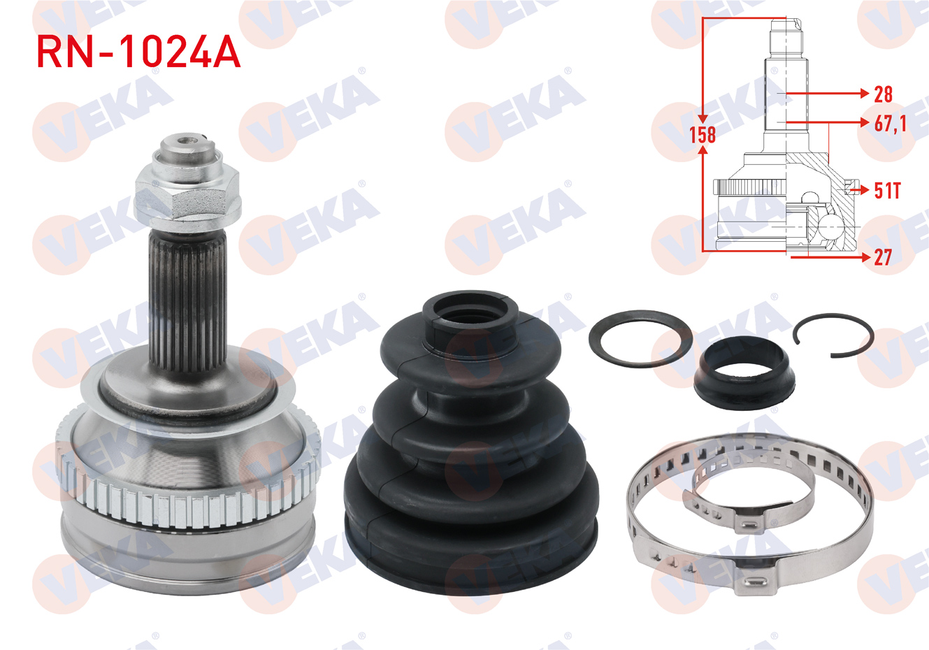 VEKA RN-1024A | Aks Kafası Sol-Sağ On Dıs Renault Master II (Fd) 2.5 D S8u ABS'li 51 Dıs 28X27x67,1 Uzunluk 158 mm 1998-2010