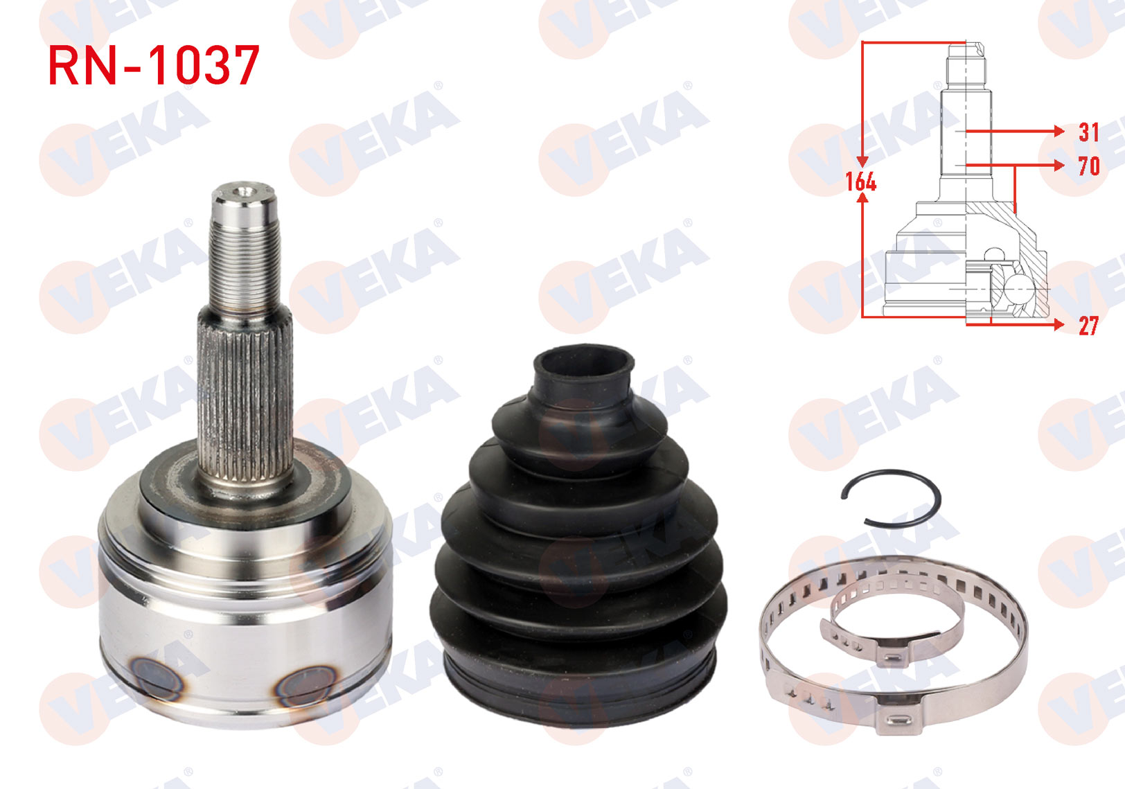 VEKA RN-1037 | Aks Kafası Sol-Sağ On Dıs (Kalın Freze) Renault Master III (Fv) 2.3 DCI 31X27x70 Uzunluk 164 mm 2010 -