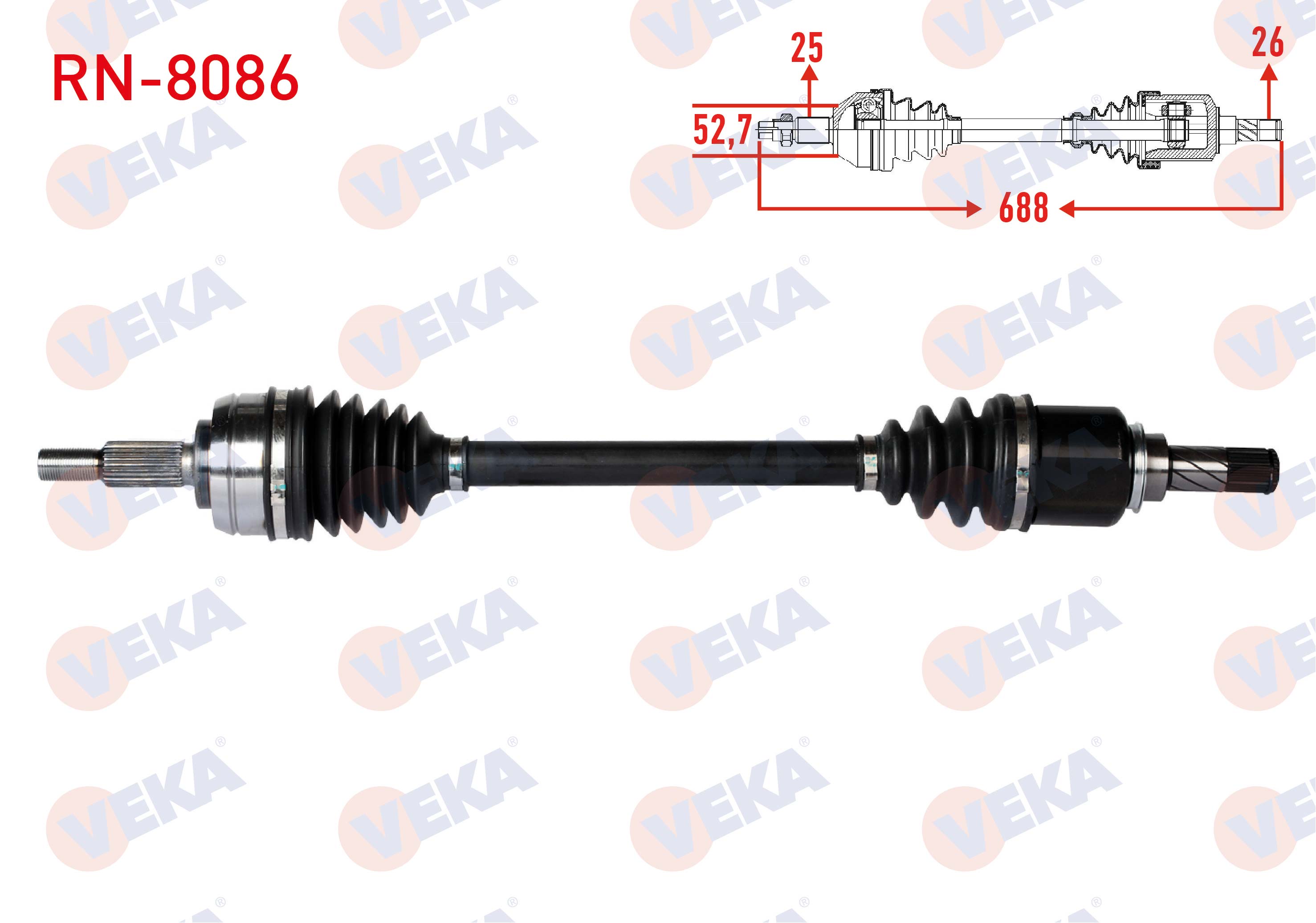 VEKA RN-8086 | Komple Aks Sol Ön Renault Fluence (L30) 1.5 DCI 5 Vites Uzunluk 688mm 2009 -