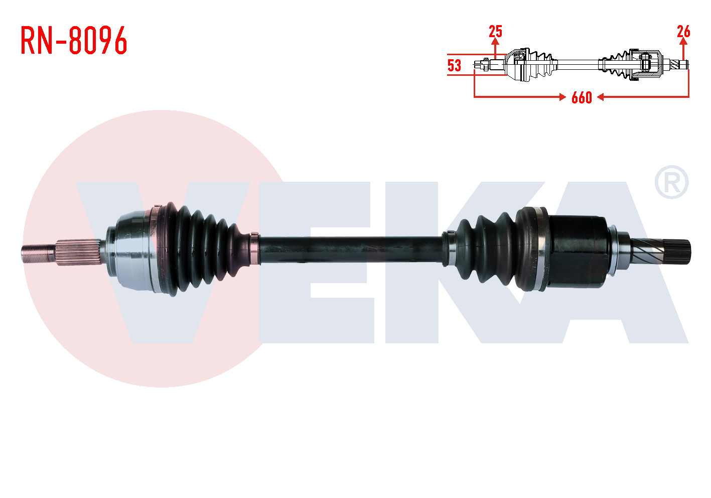VEKA RN-8096 | Komple Aks Sol Ön Renault Megane II (Bm0 / 1,Cm0 / 1) 1.5 DCI M-T 6 Vites Uzunluk 660mm 2002-2008