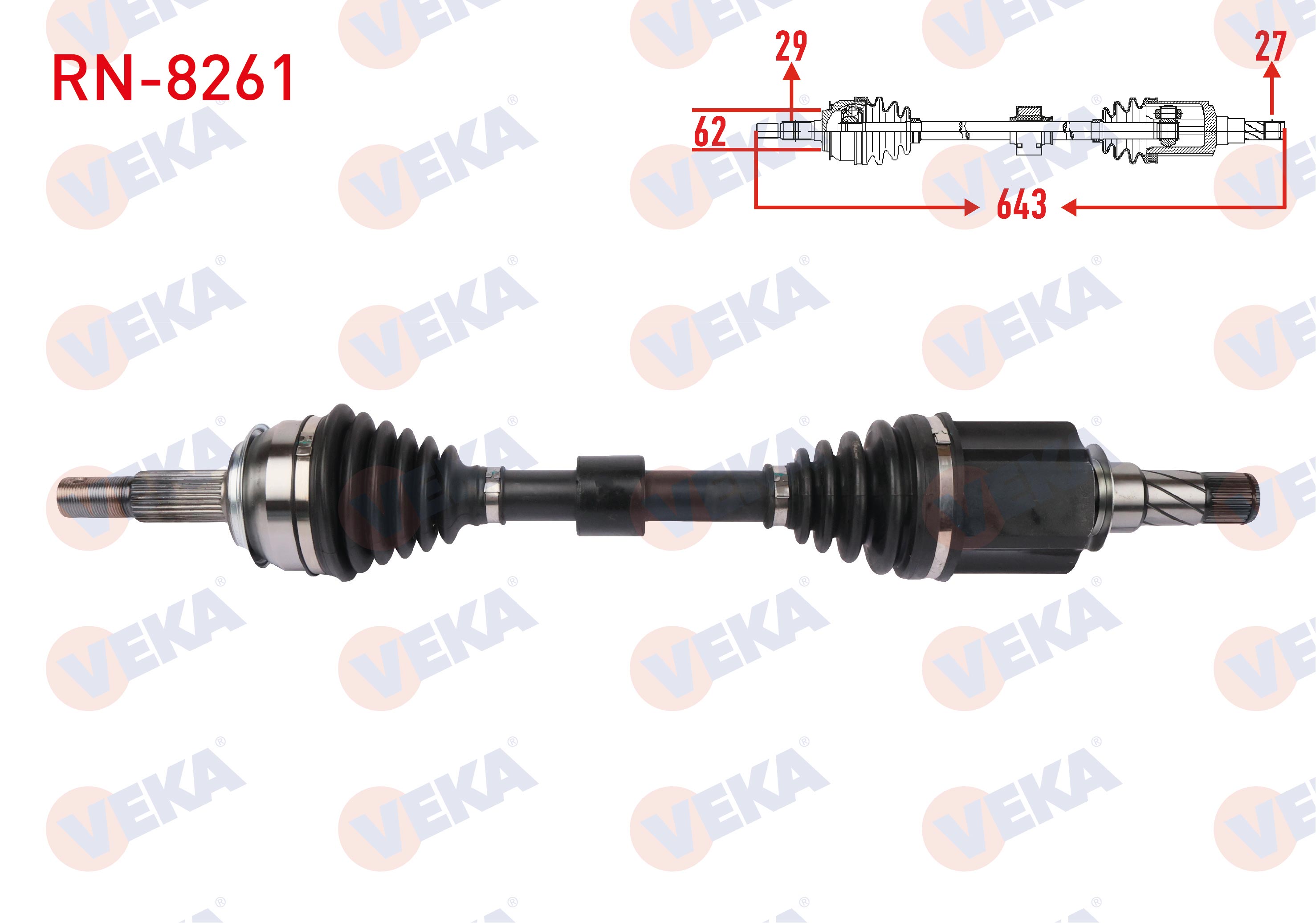 VEKA RN-8261 | Komple Aks Sol Ön Uzunluk 643mm (7 Vites Çift Kavrama) Renault Kadjar 1.2 TCE, 1.3 TCE, 1.5 Bluedcı 2018-/ Nissan Qashqai II 1.5 DCI, 1.3 Dıg-T 2018 -