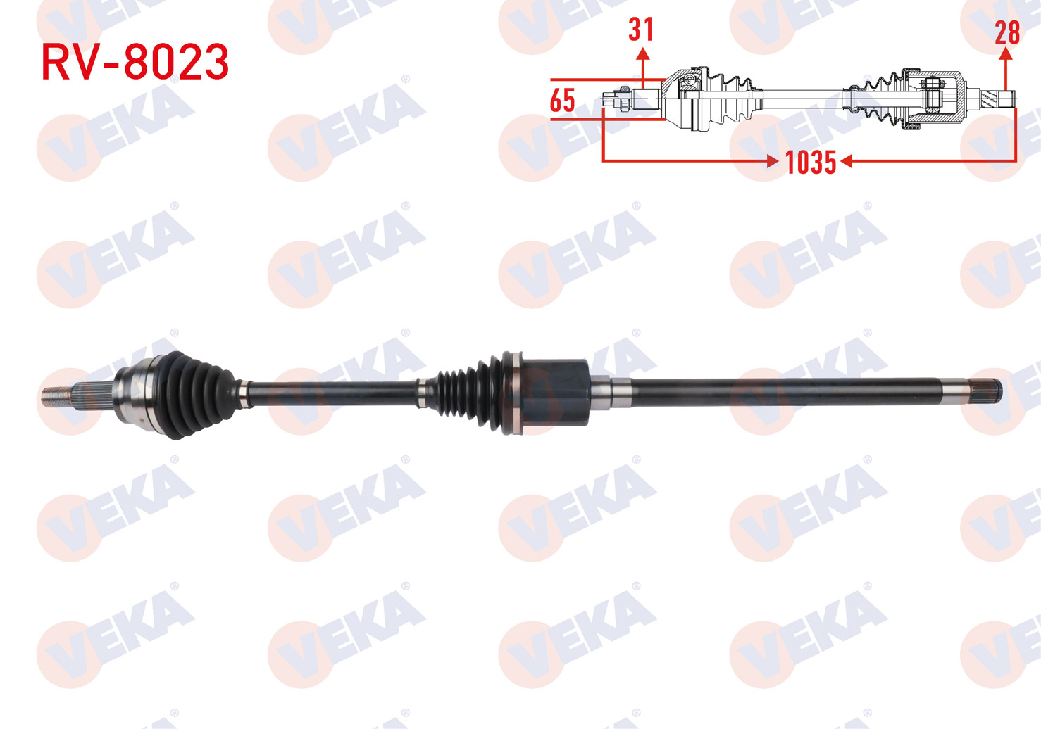 VEKA RV-8023 | Komple Aks Sağ On Uzunluk 1035mm Land Rover Range Rover Velar 2.0 D 2017-/ Jaguar F-Pace 2.0 D 2015 -