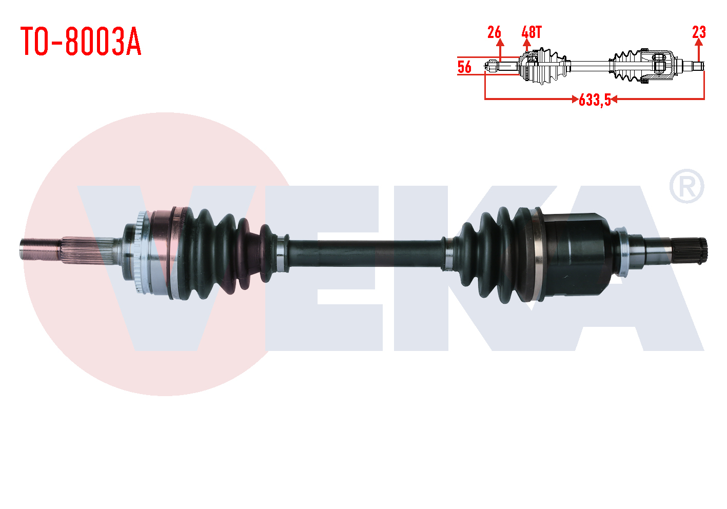 VEKA TO-8003A | Komple Aks Sol Ön Toyota Corolla (_E12_) 1.4 Vvt-I ABS'li 48 Dıs Uzunluk 633.5mm 2002-2007