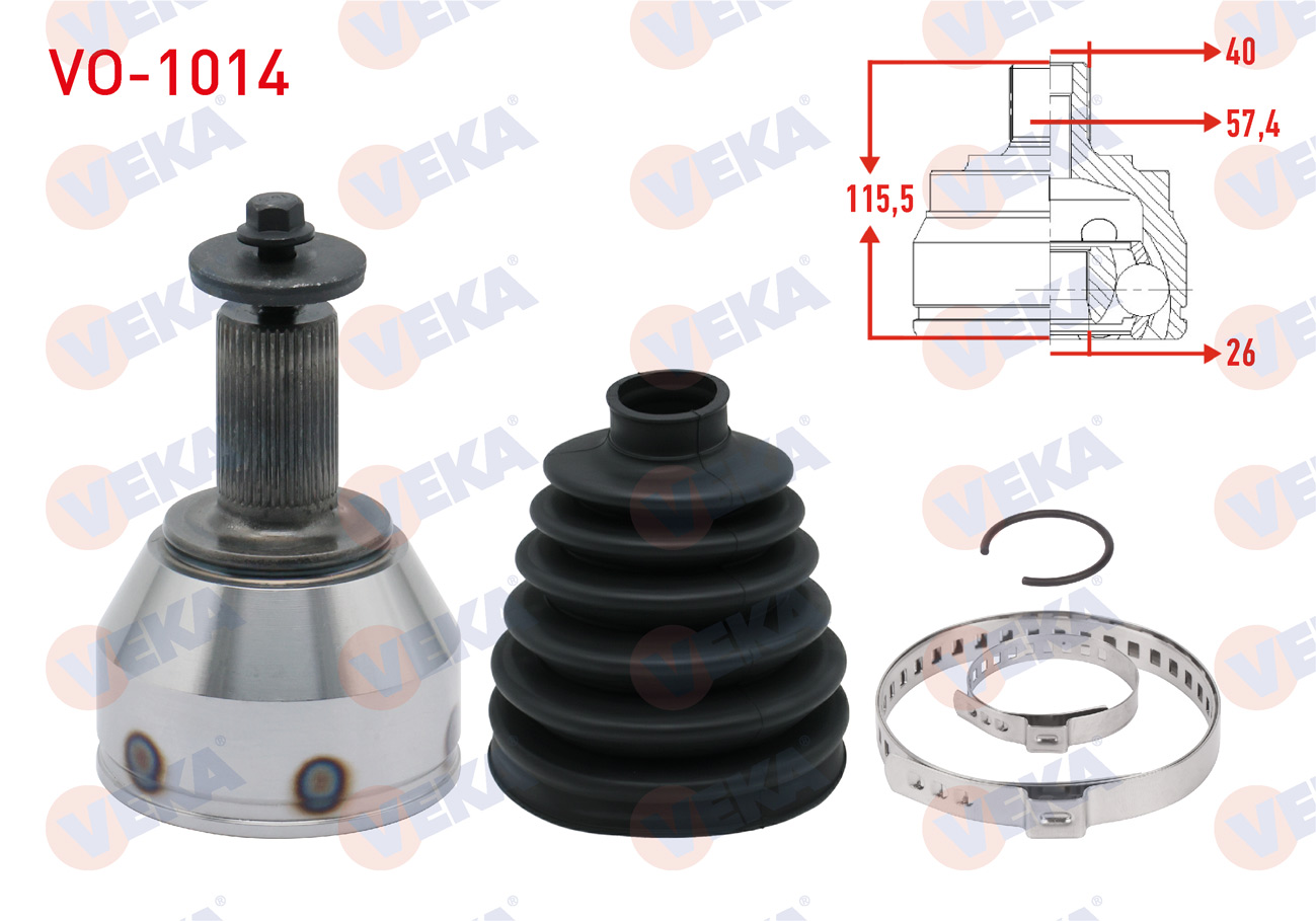 VEKA VO-1014 | Aks Kafası Sol-Sağ On Dıs Uzunluk 115,5mm Volvo V60 1.6 D A-T 2010 -