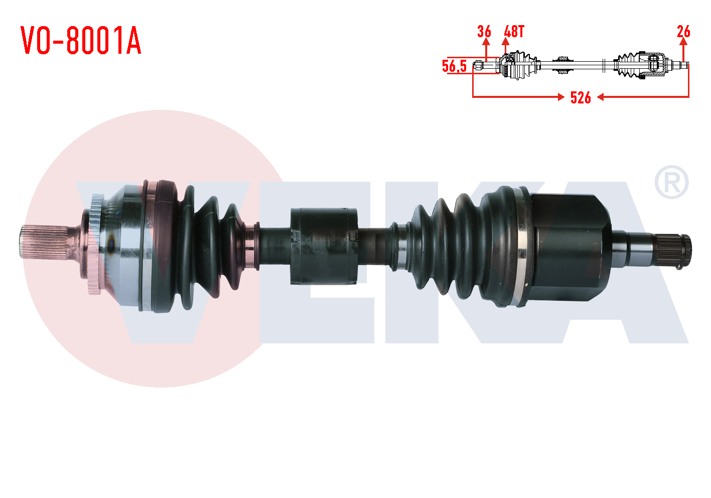 VEKA VO-8001A | Komple Aks Sol Ön Volvo S60 2.0 T A-T ABS'li 48 Dıs Uzunluk 526 mm 2000-2010