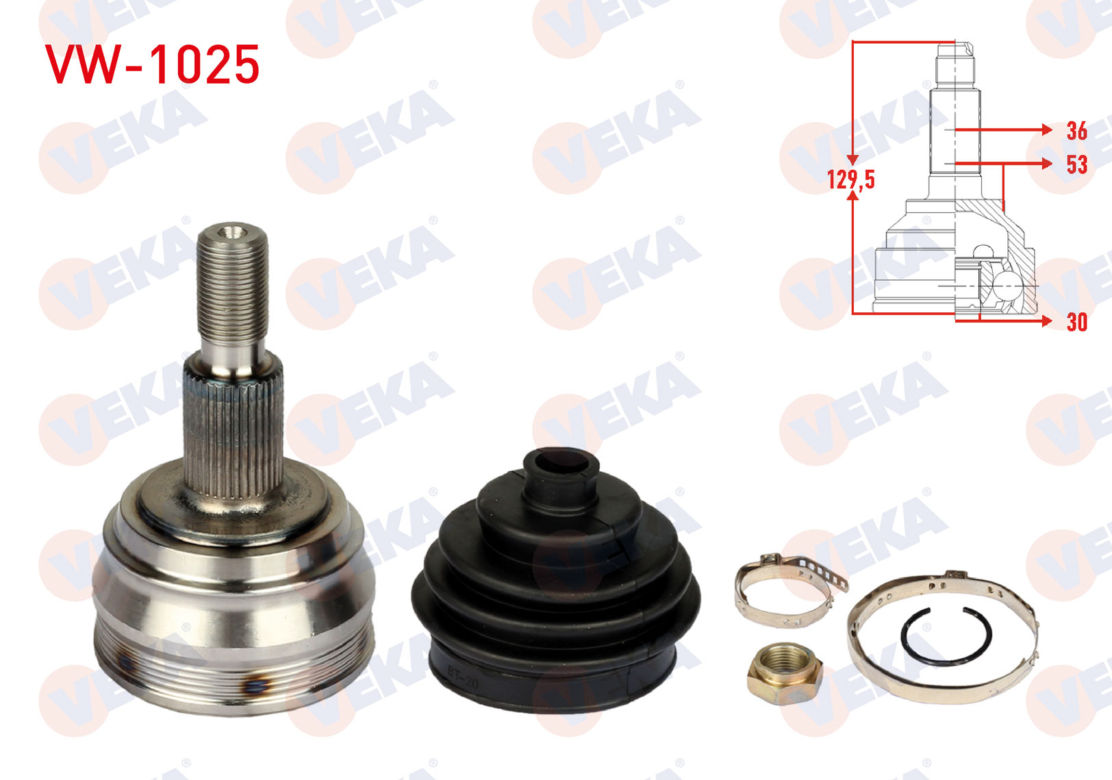 VEKA VW-1025 | Aks Kafası Sol-Sağ On Dıs Volkswagen Golf IV (1J1) 1.6İ 36X30x53 Uzunluk 129 mm 1997-2005